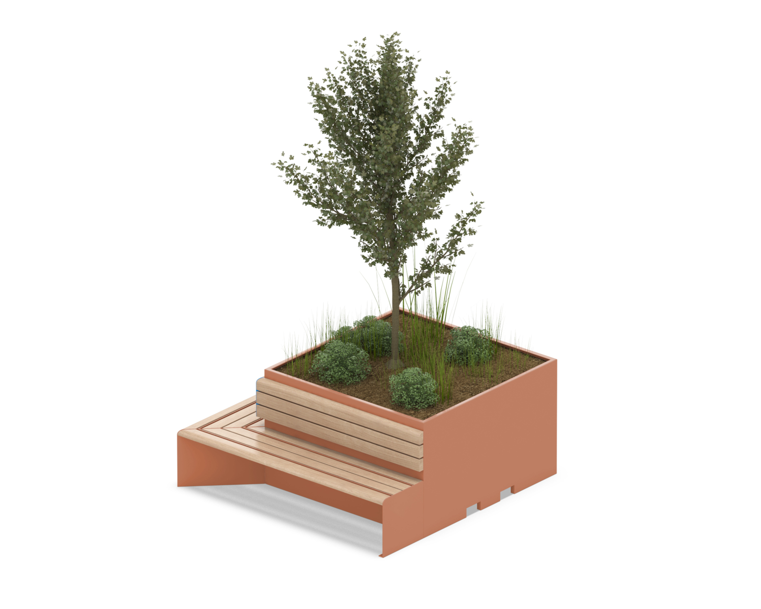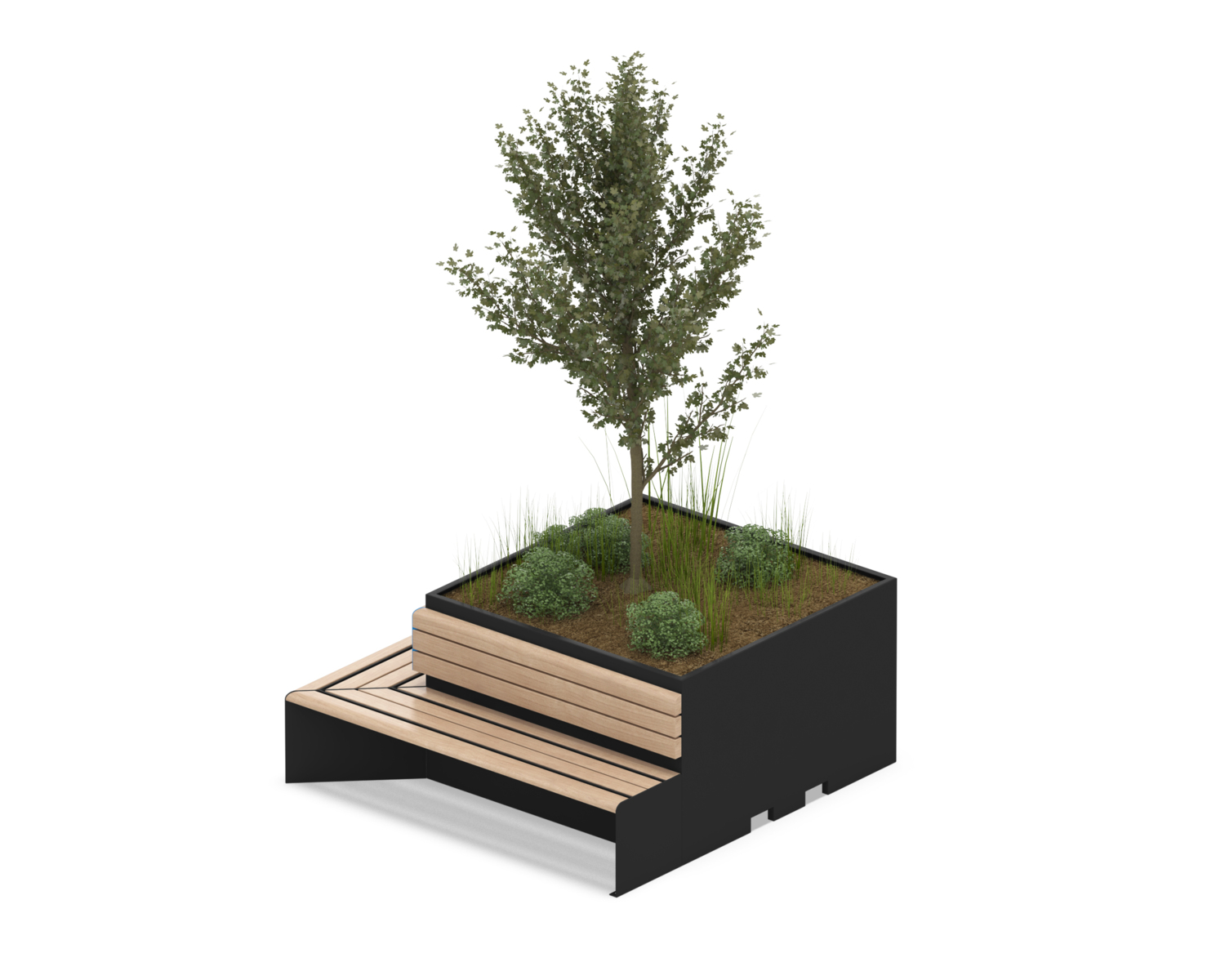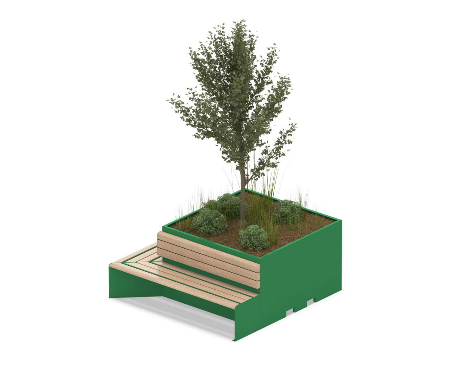 Skap små oaser i utemiljøet med sitteplasser kombinert med beplantning. Den grønne beplantningen gir en fin ramme og en mykere følelse. Denne modulen beatår av en opphøyd plantekasse og 2 aittebenker med rygg i vinkel rundt plastekassen. MeetUp kjennetegnes av rene linjer og funksjonalitet, og er ideell for offentlige områder som skolegårder og parker. Ved å kombinere modulene på ulike måter er det uendelige muligheter for å skape møteplasser for sosialt samvær i utemiljøet. Modulene er laget av FSC®-merket nordisk furu, og du kan velge mellom antiråtebehandling og vannbasert beis for utendørs bruk. Modulenes ståloverflater finnes i forskjellige farger.