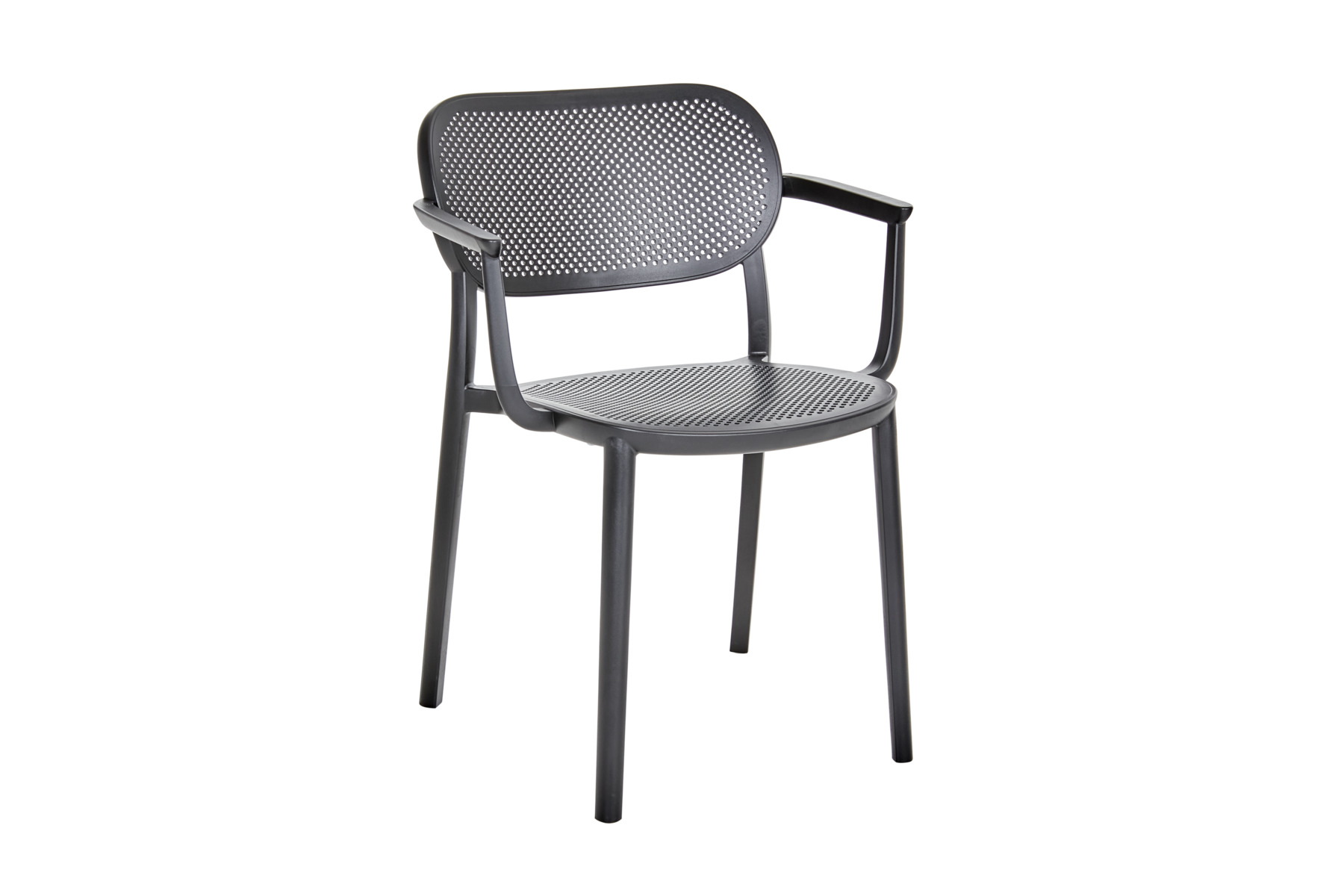 Visby er en klassisk og elegant stol med fine detaljer. God ergonomisk sittekomfort med sjenerøse mål gjør at Visby egner seg like godt til innendørs som utendørs bruk. Laget av miljøvennlig og resirkulert teknopolymer.