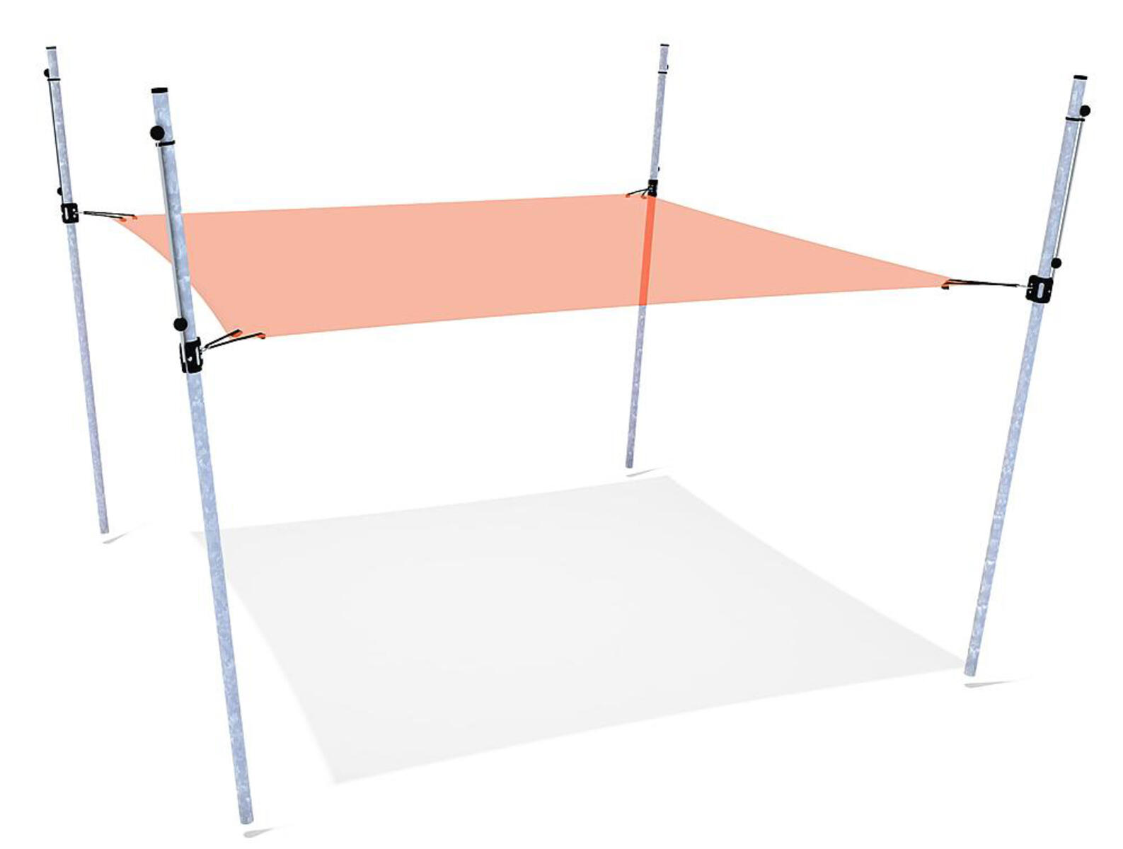 Solseil med fire trestolper i robinia. Et fint alternativ til parasoll. Værbestandig materiale og stopper opp til 90% av solen stråler. Vannavvisende. En viss vanngjennomtrengning tillates, slik at det ikke blir liggende vann på seilet. Dette bidrar til at soleilet varer lenger. Selve seilet måler L360xB360 cm. Til lekeplasser. Mål: L410xB410xH220 cm. Monteringstid: 1 person a 3 timer.