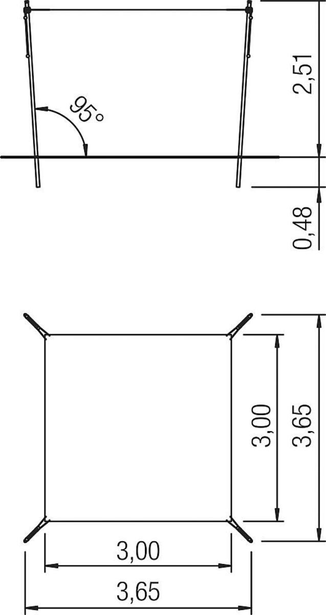 Ved montering skal det sikres at det er ca.25 cm mellom seil og festepunkt, da seilet vil endre seg i forhold til kulde og varme.