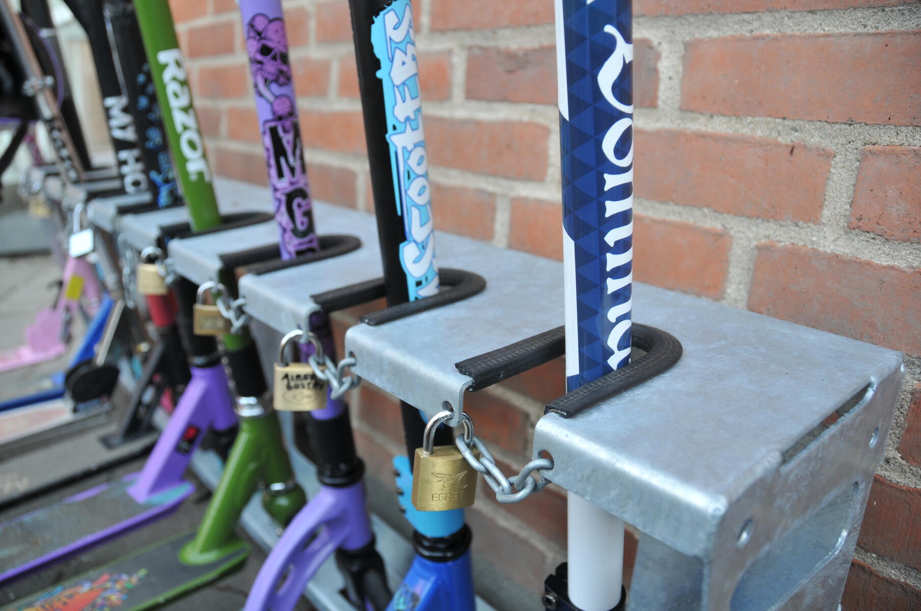 Det er viktig med god og praktisk oppbevaring av syklene for at de skal vare så lenge som mulig. Her tilbyr vi et smart sykkelstativ som passer til 3 sparkesykler eller tohjulsykler. Mål: 23x33x66 cm. Av lakkert metall.