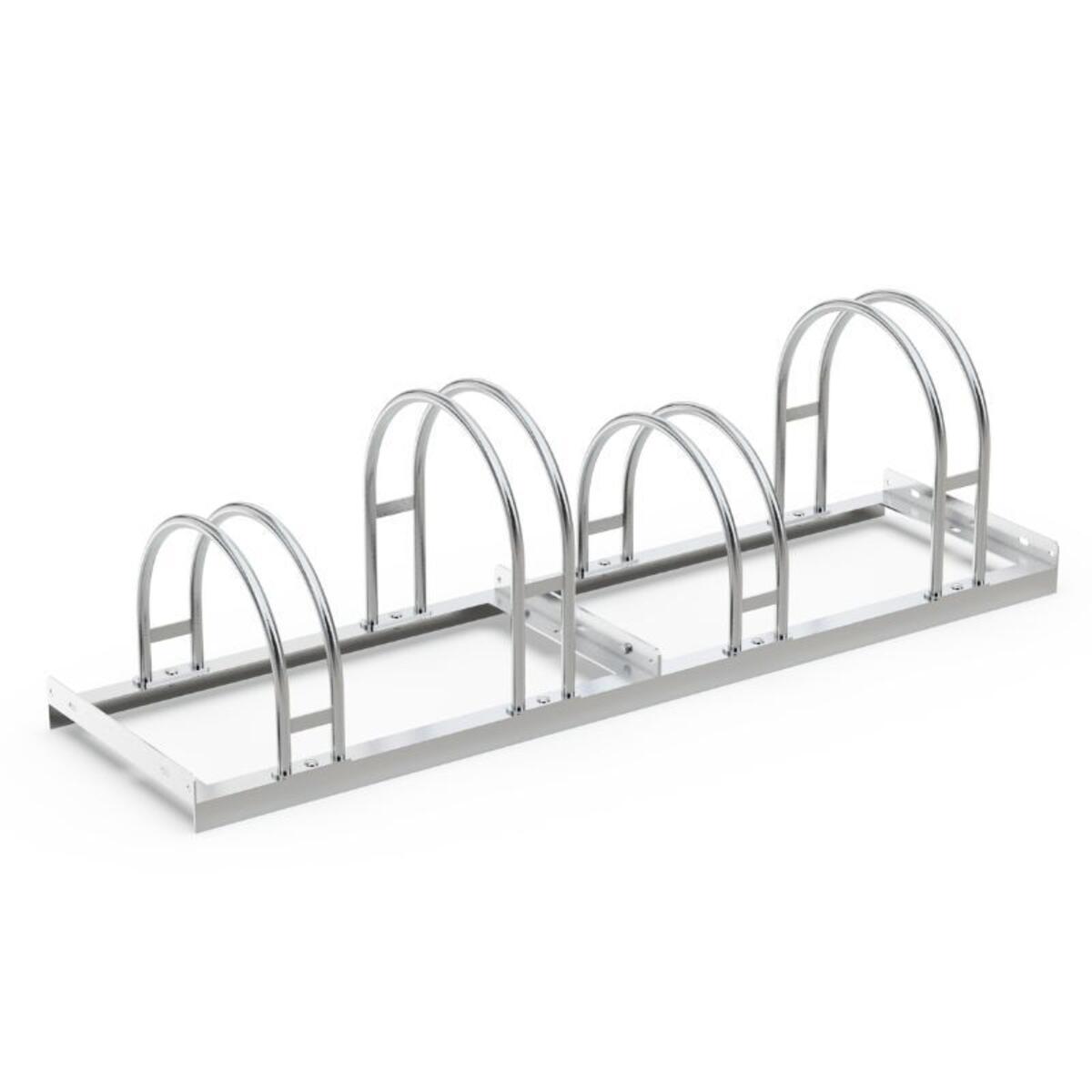 Sykkelstativ til fire sykler. Ekspanderbolt til forankring kjøpes separat i nærmeste byggmarked. Se produktblad for materialspesifikasjon og annen info. Ved montering/installasjon skal alltid manualen som medfølger produktet ved levering benyttes. Den nyeste versjonen er tilgjengelig på forespørsel. Inkluderer markforankring K4.