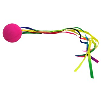 Et sett med 6 baller i ulike farger. Hver ball har et fargerikt nylonbånd. Ballen er lette å visualisere ved hjelp av det lange båndet og kan med fordel brukes ved kaste- og fangeøvelser. Ballene er lette og kan fint brukes sammen med tennisracket. Båndets lengde er 46 cm og ballen er Ø5 cm. Fra 3 år.