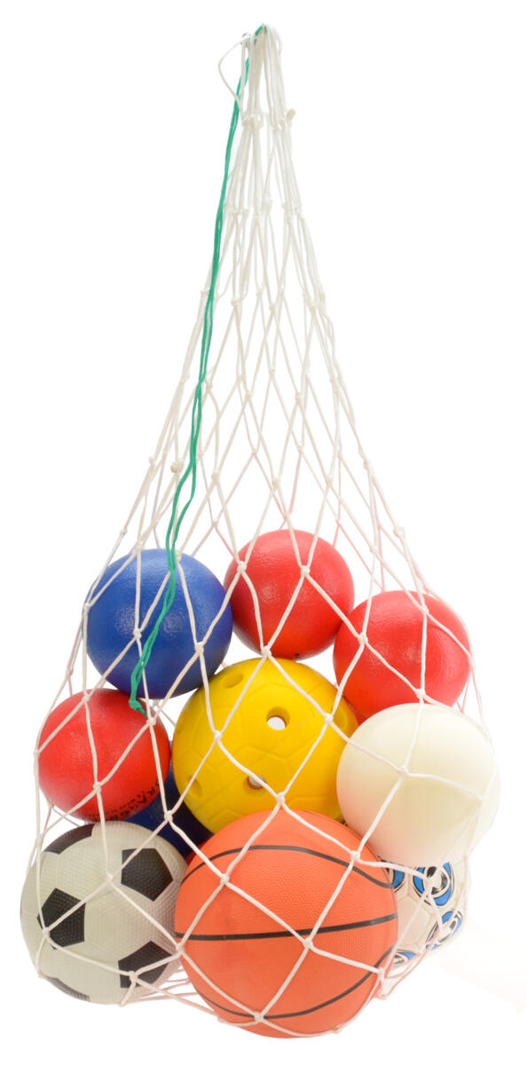 Et stort sett med 18 baller som leveres i et praktisk oppbevaringsnett. Inneholder 6 basketballer, 6 fotballer str 4 og 6 gummiballer Ø21,5 cm. Baller av gummikonstruksjon som tåler hard slitasje, laget spesielt for barnehager og skolers harde krav, både på grus og asfalt. Butylblære.
