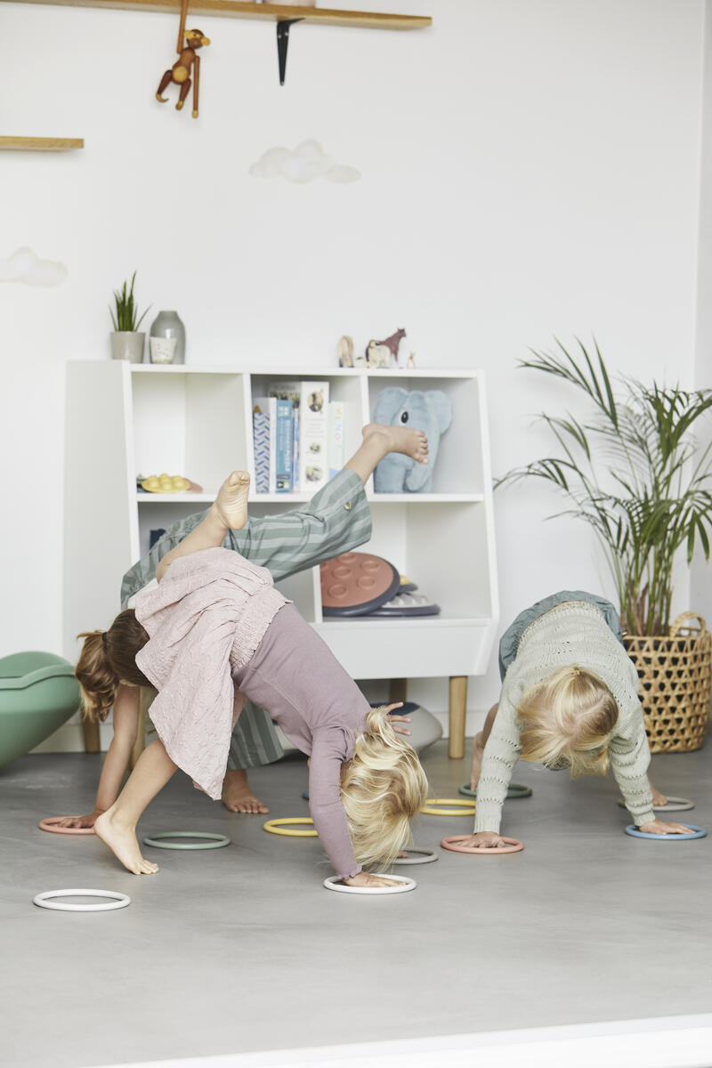 6 stk/sett. Fargerike og tiltalende ringer av gummi med uendelige bruksområder f eks sjonglering, kaste- og fange øvelser, dans, regneøvelser mm. Passer både til individuell lek og lek i grupper. Mål: Ø16,4 cm.