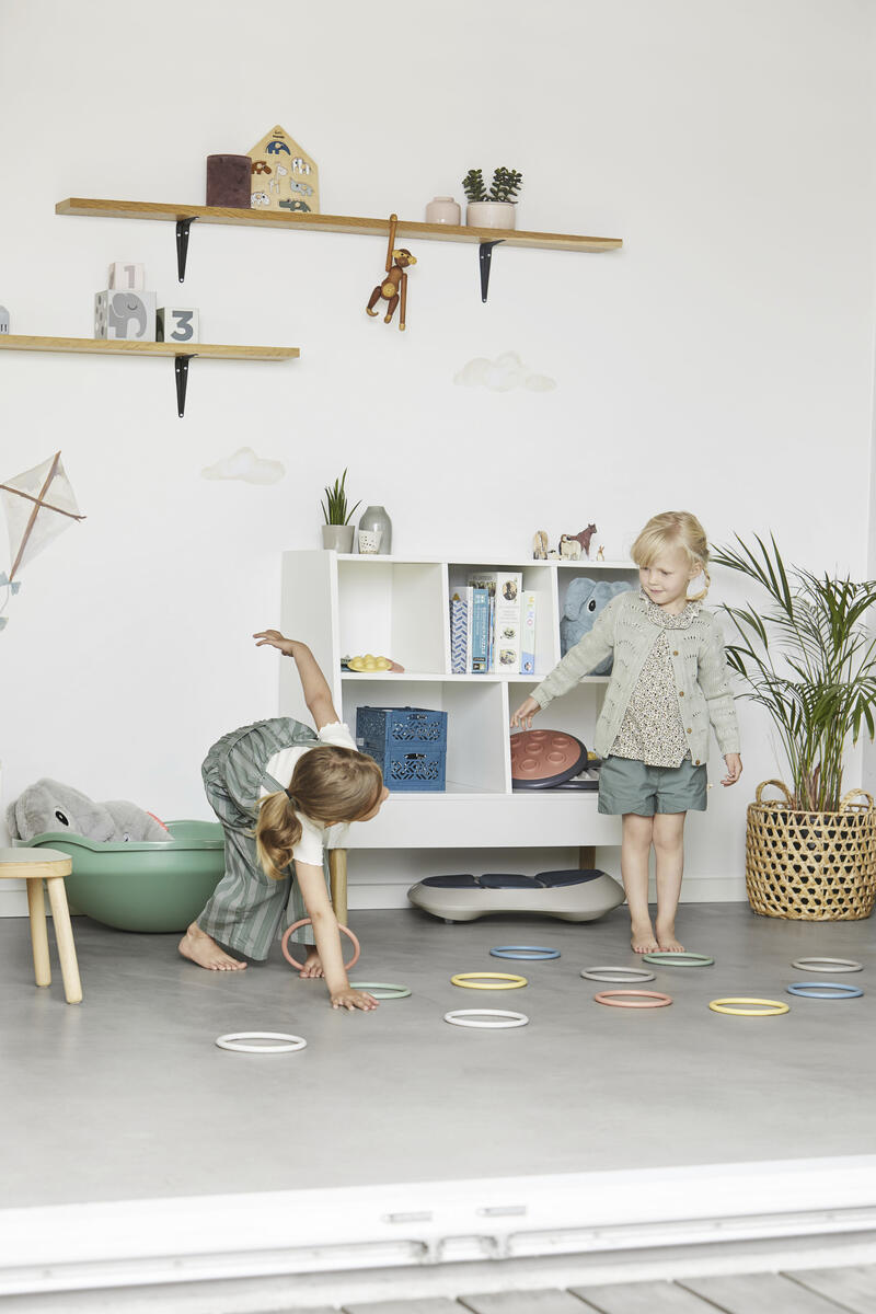 Dette motorikksettet øker de motoriske-, kognitive- og sosiale ferdighetene og stimulerer sansene og bevisstgjøring av farger. Man kan bygge lange motoriske baner, trene balanse, kaste og fange øvelser mm. Settet gir også store muligheter for morsom lek, både individuelt og i grupper. På flere av produktene følger det med en veiledning til hjelp for inspirasjon og læring. Inneholder: 6 aktivitetsringer (72508), Følelsespill (75002), Riverstones (74888), Steiner (73344), Fjell, Elv (71011), Floorsurfer (71105), Balanserende hatt, Tumleren (75007) og et balansebrett. Fra 2 år.