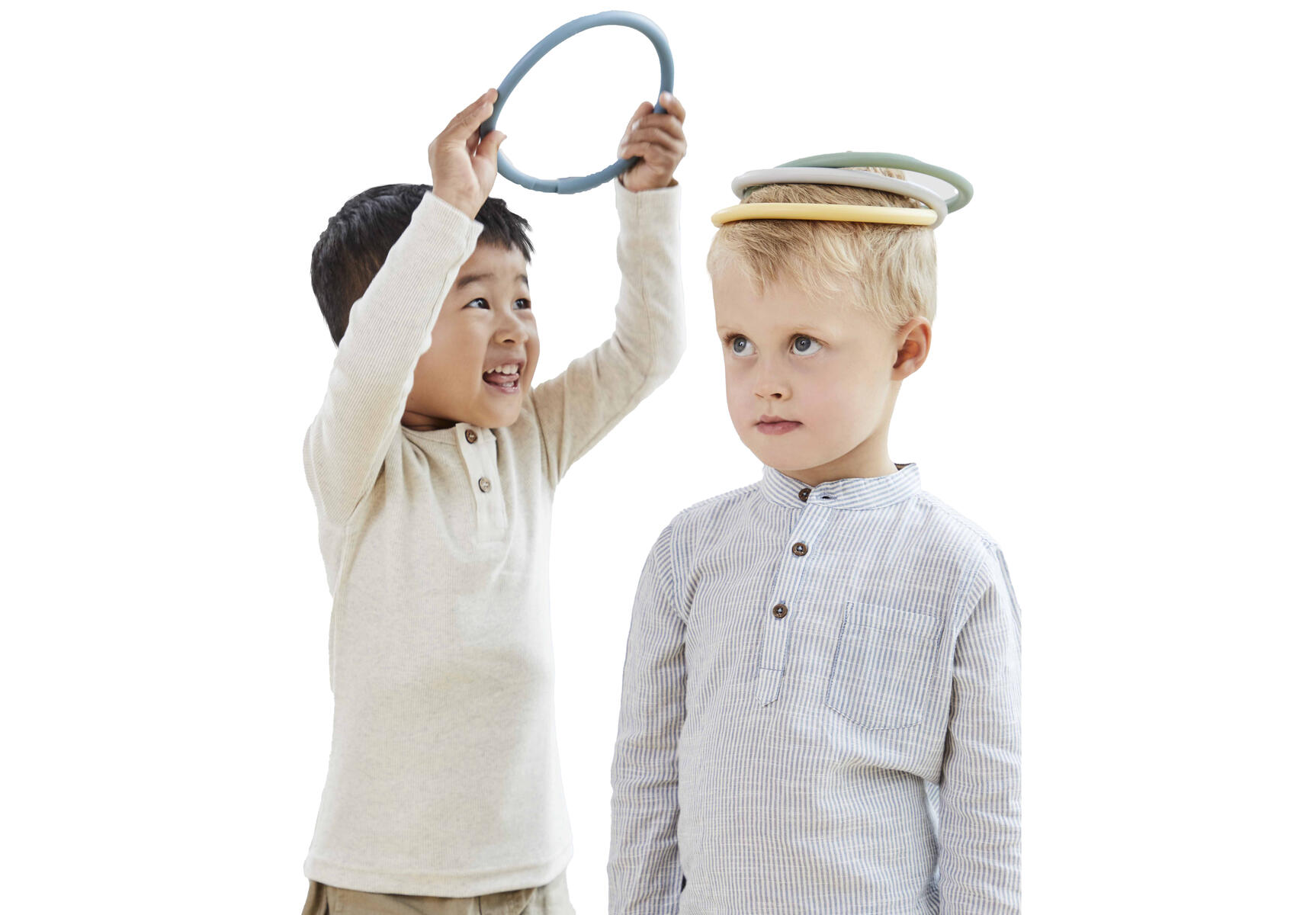 6 stk/pk. Ringer i nøytrale farger, laget av myk og vannavvisende TPE-gummi. God overflate som er fin til sensorinsk stinulering. Kan også brukes ved jonglering, last- og fangøvelser mm. Passer til individuell bruk og i grupper. Trener øye- og håndkoodrinasjon. Mål: Ø16,4 cm.