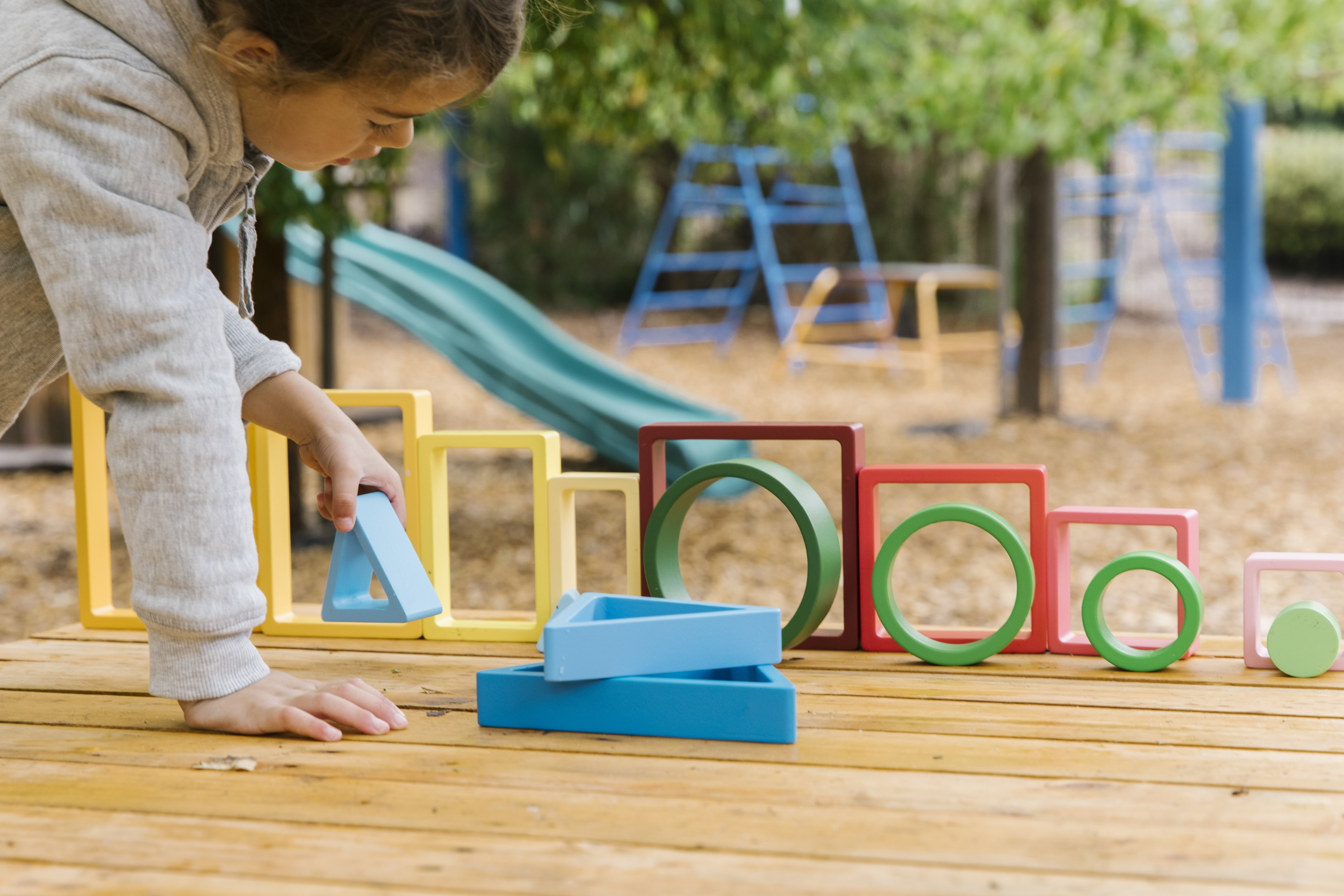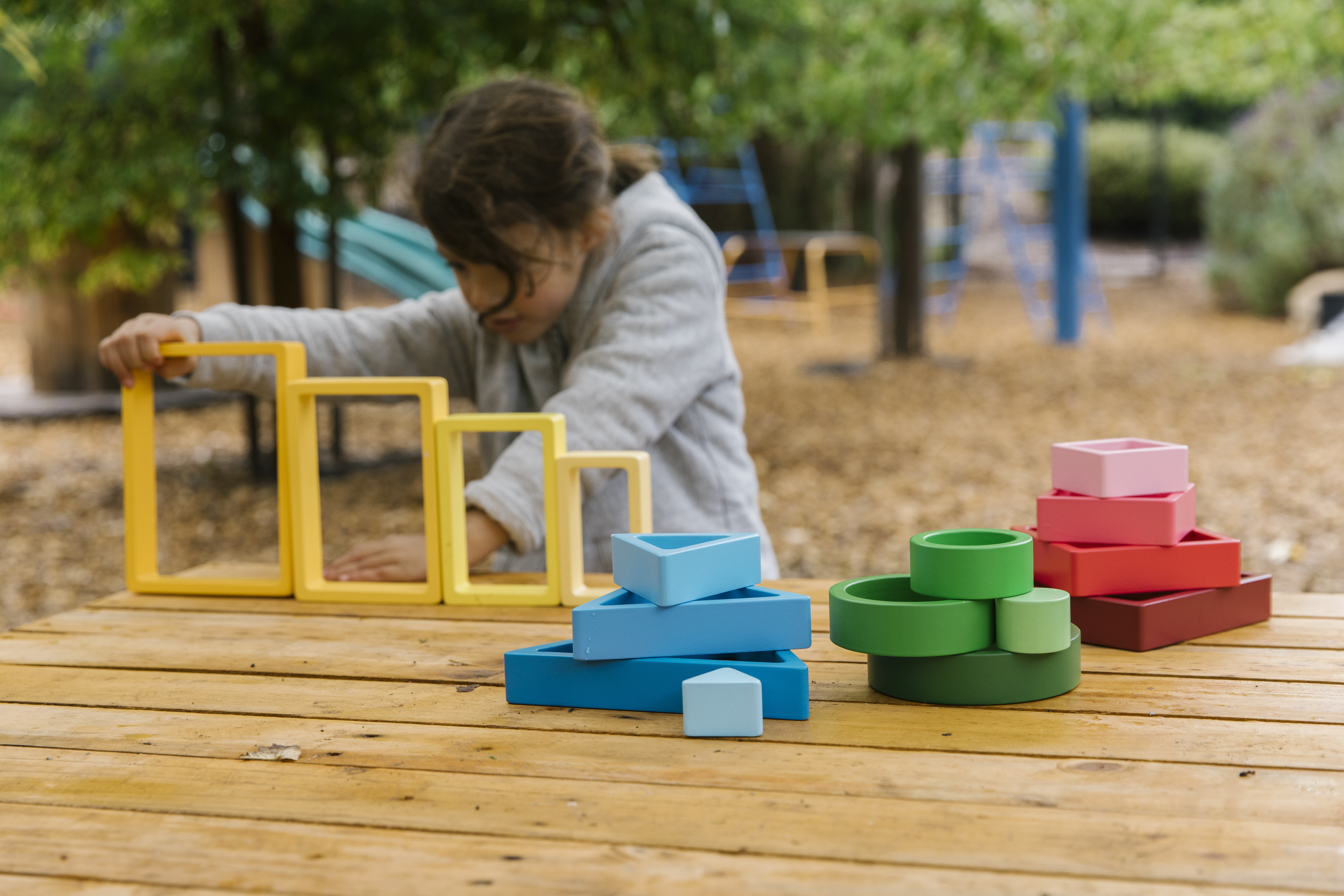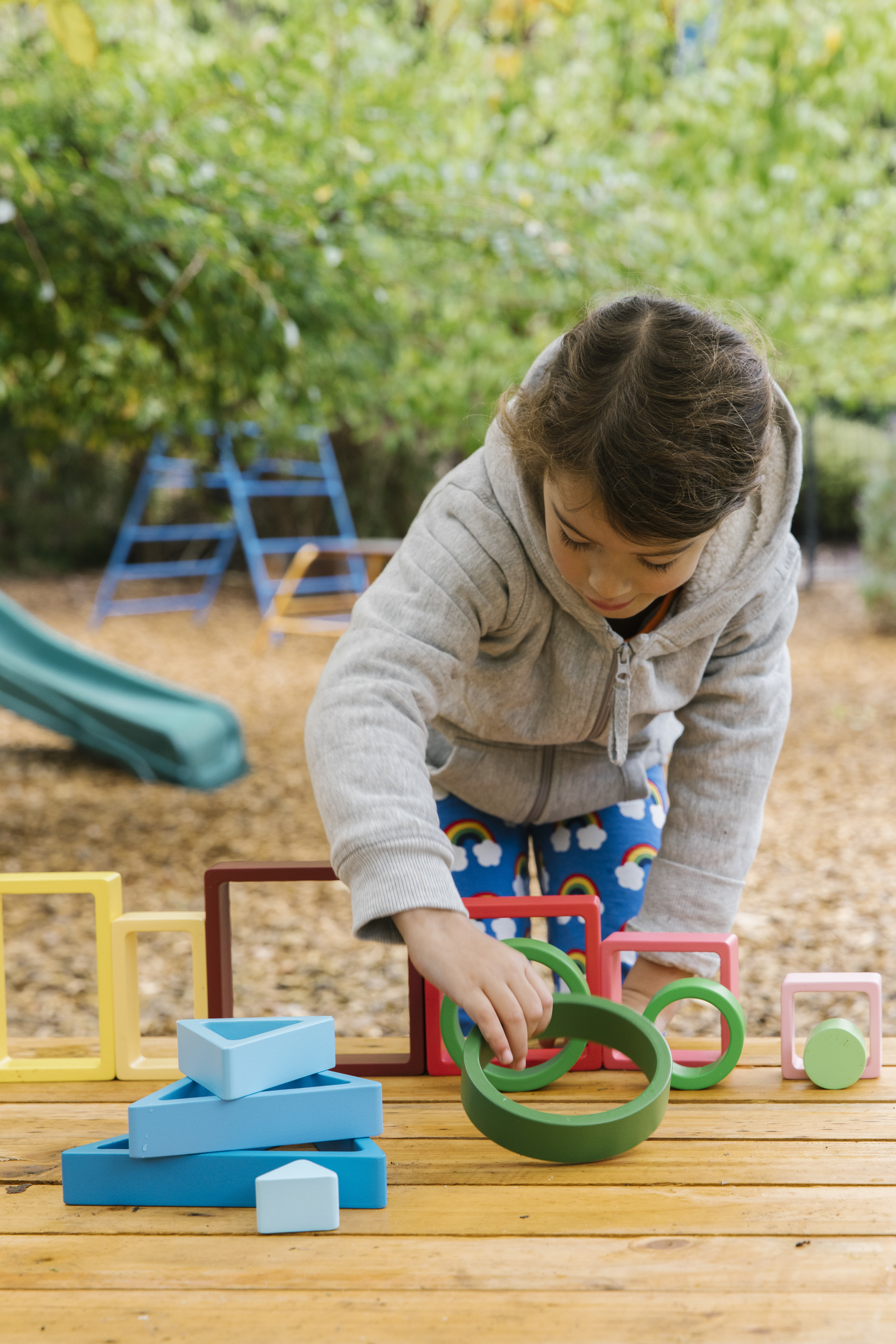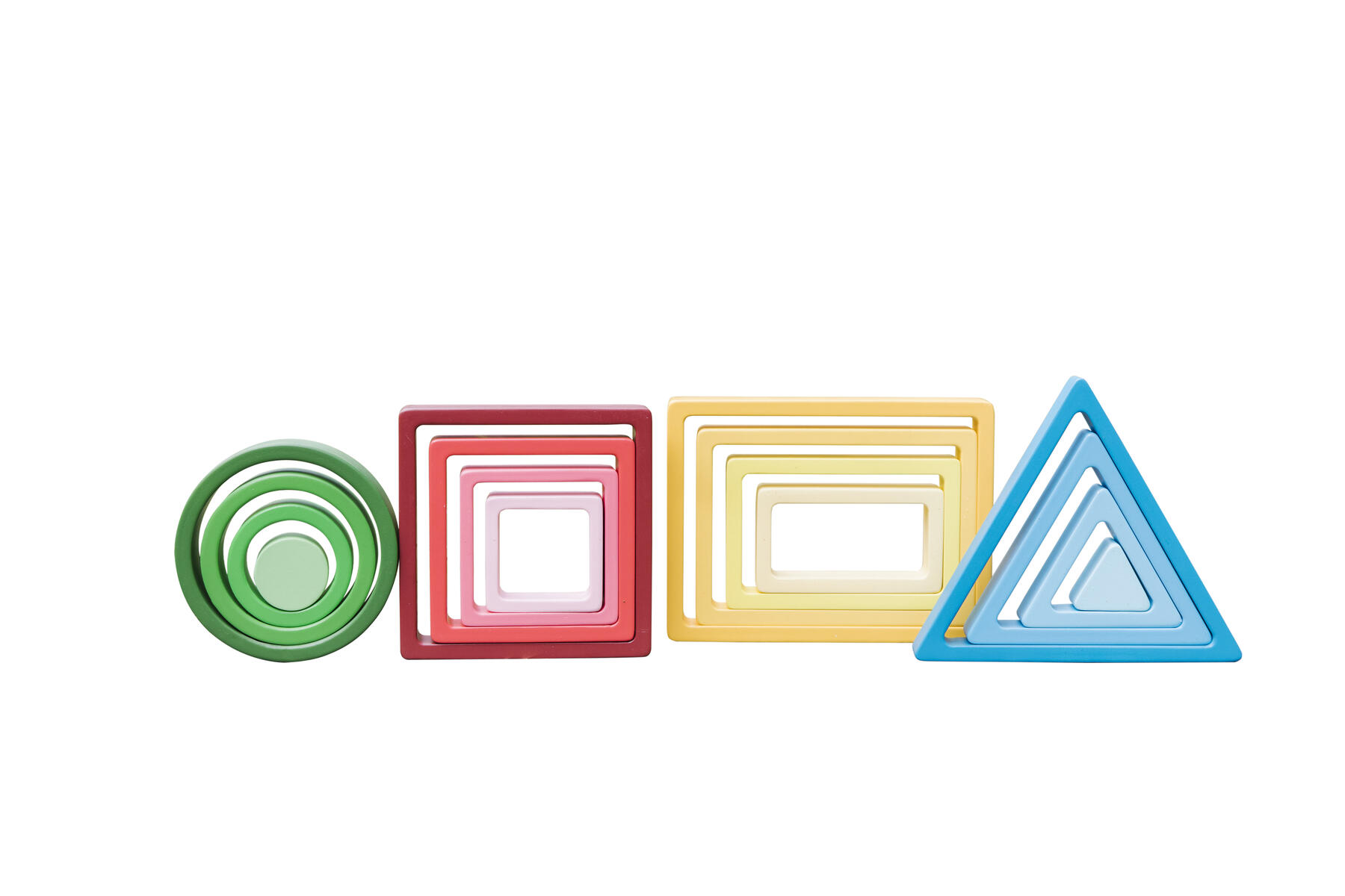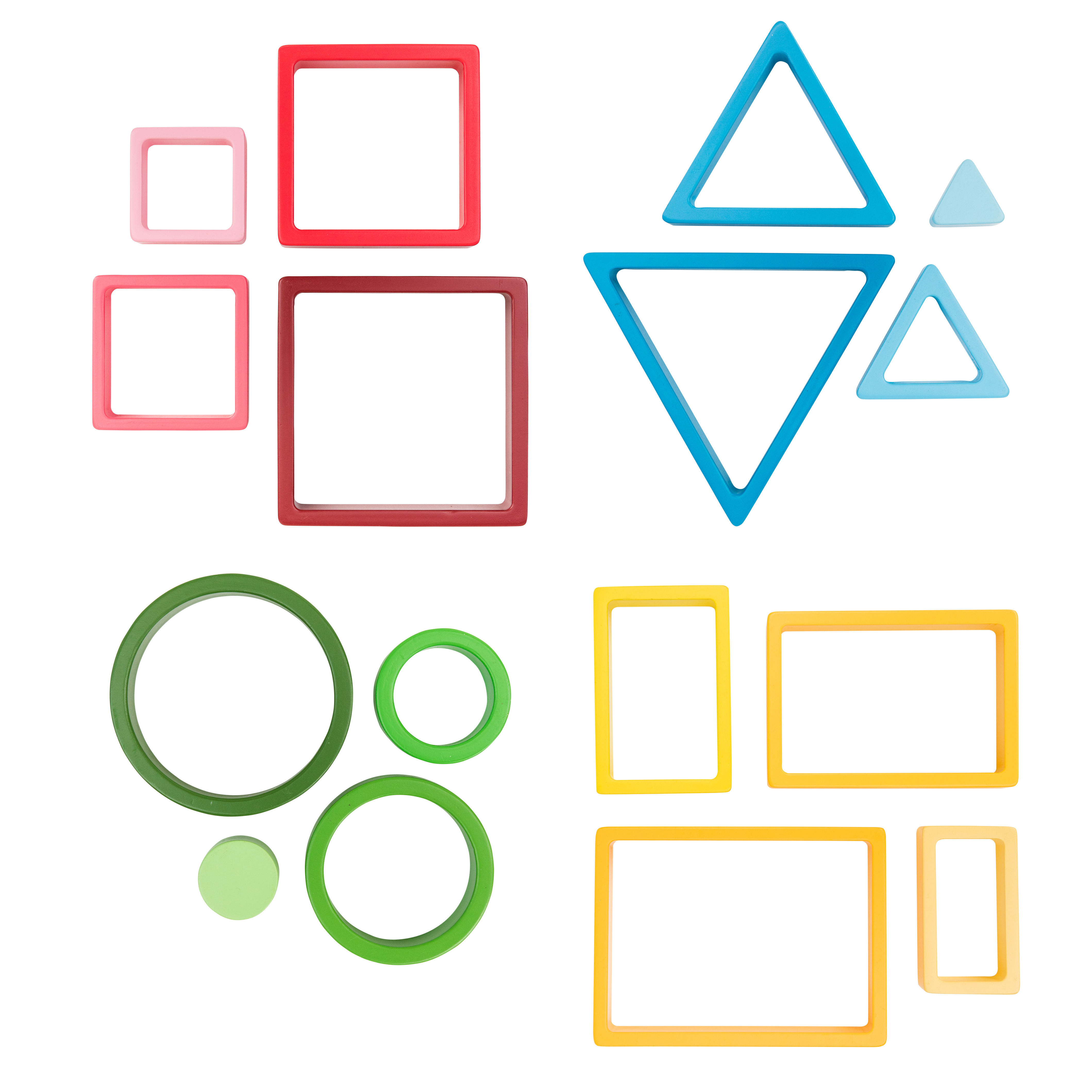 Uendelige læringsmuligheter med disse fantastiske fargerike formene. I tillegg til farge er formene et godt grunnlag for å trene på sortering, mønster og navn. Dette settet er stort nok til å jobbe med alene eller med andre barn for å øve på teamarbeid og samarbeidsevner mens de skaper. Størrelse: Ca 20x15x3 cm for den største delen og 4,5x3 cm for den minste delen. Laget av FSC-merket MDF. Fra 1 år.