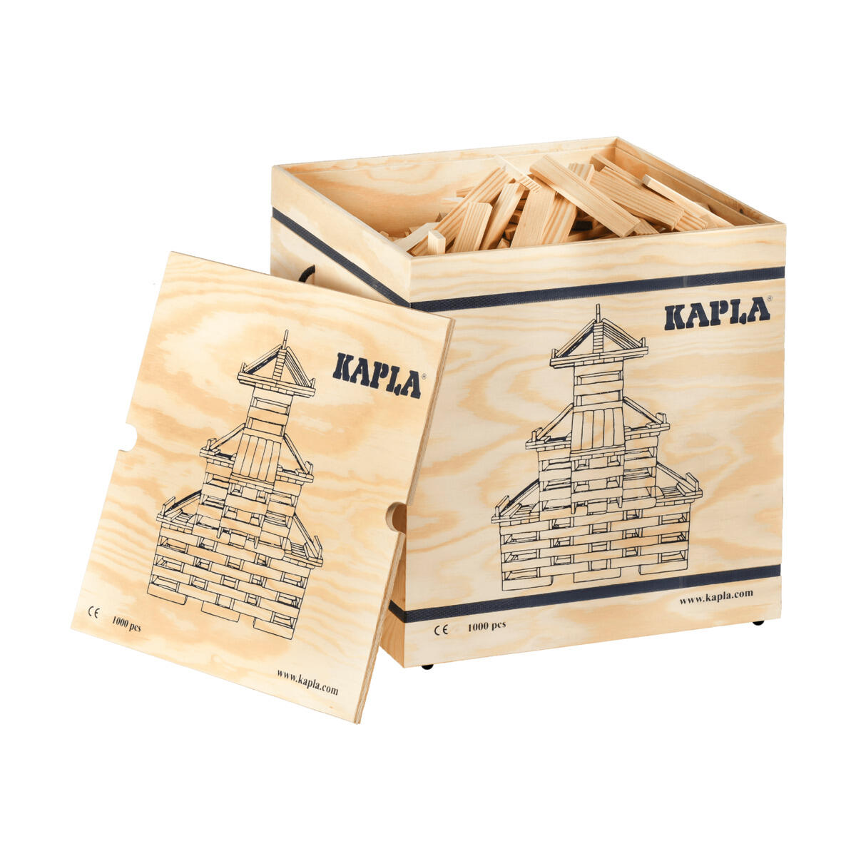 Alle byggestavene er identiske. Holder til mange timers kreativ konstruksjon. Lengde 12 cm. 2 byggeveiledninger. Fra 3 år. Leveres i treboks med lokk og hjul. Av PEFC-merket bjørk.