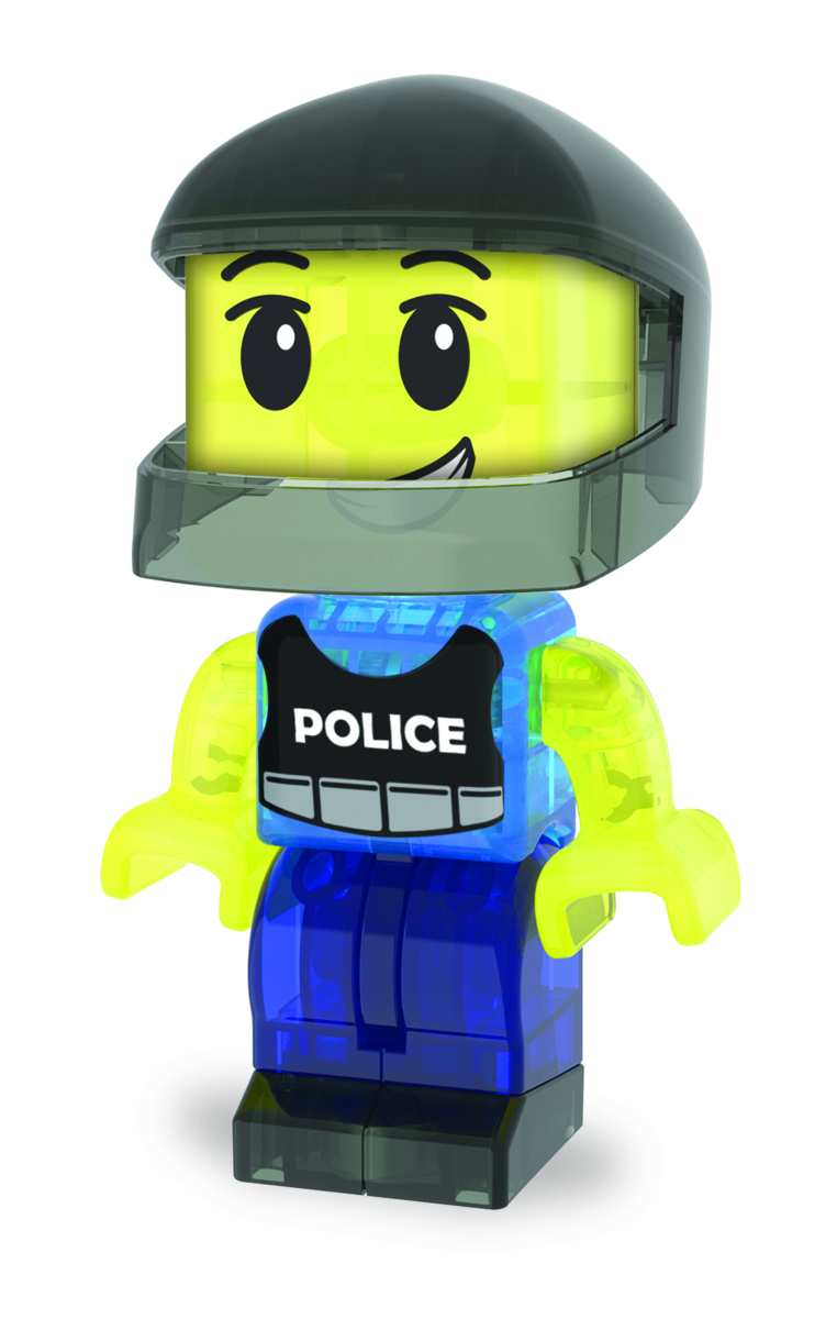 20 deler/pk. Et morsomt sett med politibil, politifigur, veideler og byggeklosser. Ved hjelp av de magnetiske platene får barna forståelse for lagarbeid og problemløsning. Den glatte overflaten på bitene er designet for å motstå flekker og riper. Størrelse på figur er 7 cm. Laget av ABS. PVC-fri. Fra 3 år.