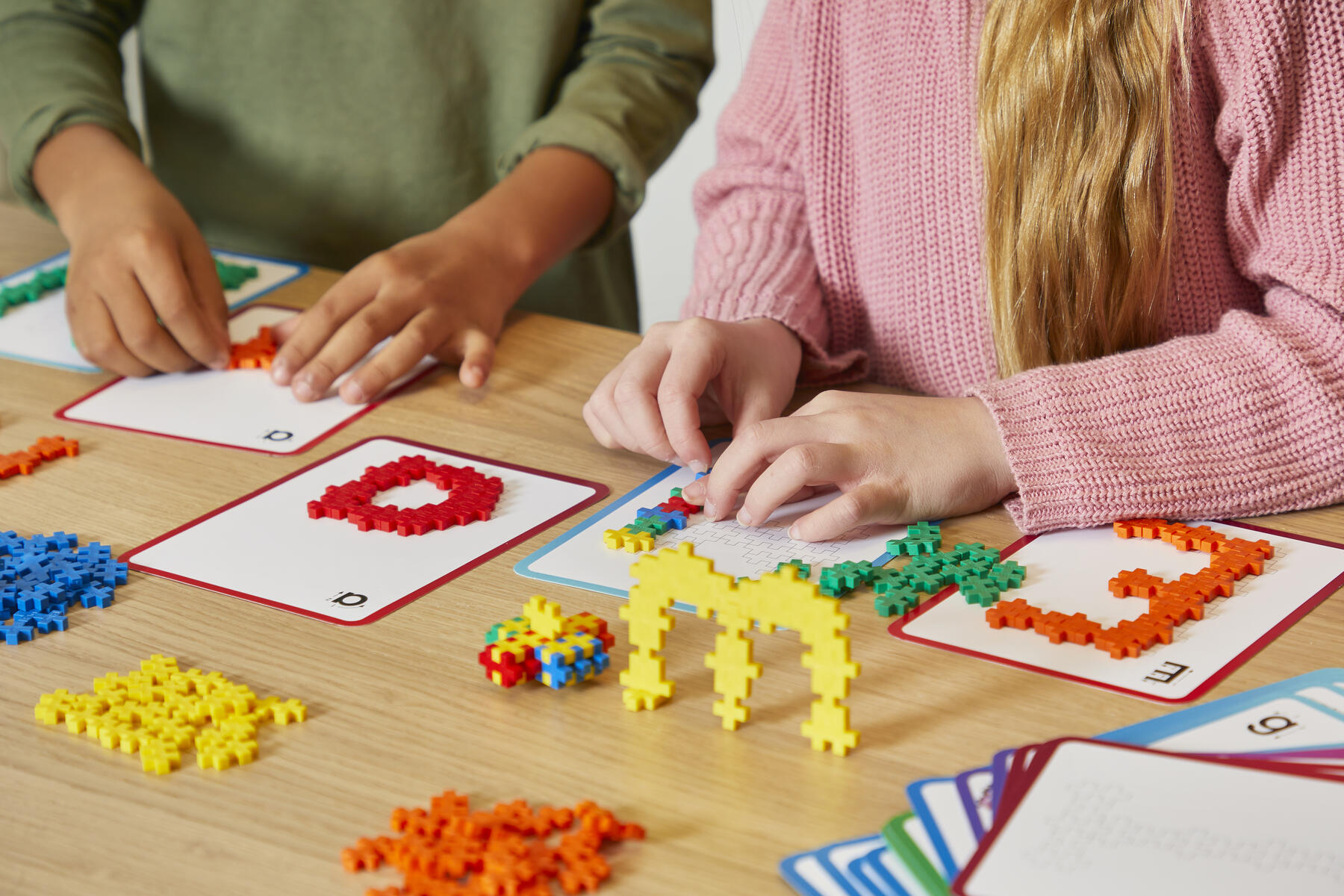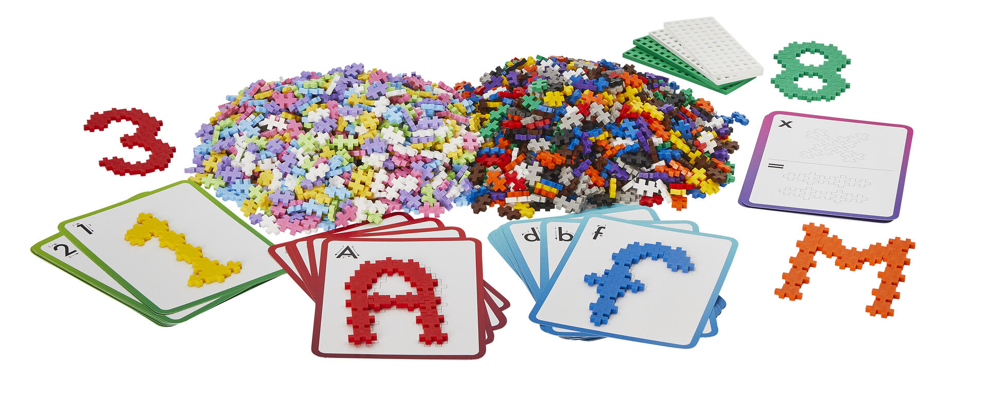600 stk/pk. Bygg med PLUSS-PLUSS mens du lærer ABC og 123. Dette pedagogiske og lærerike settet inneholder 600 PLUSS-PLUS-klosser og 40 dobbeltsidige kort. Kortene har bokstaver og tallene 0-9. Laget av næringsmiddelgodkjent PE. Fra 5 år