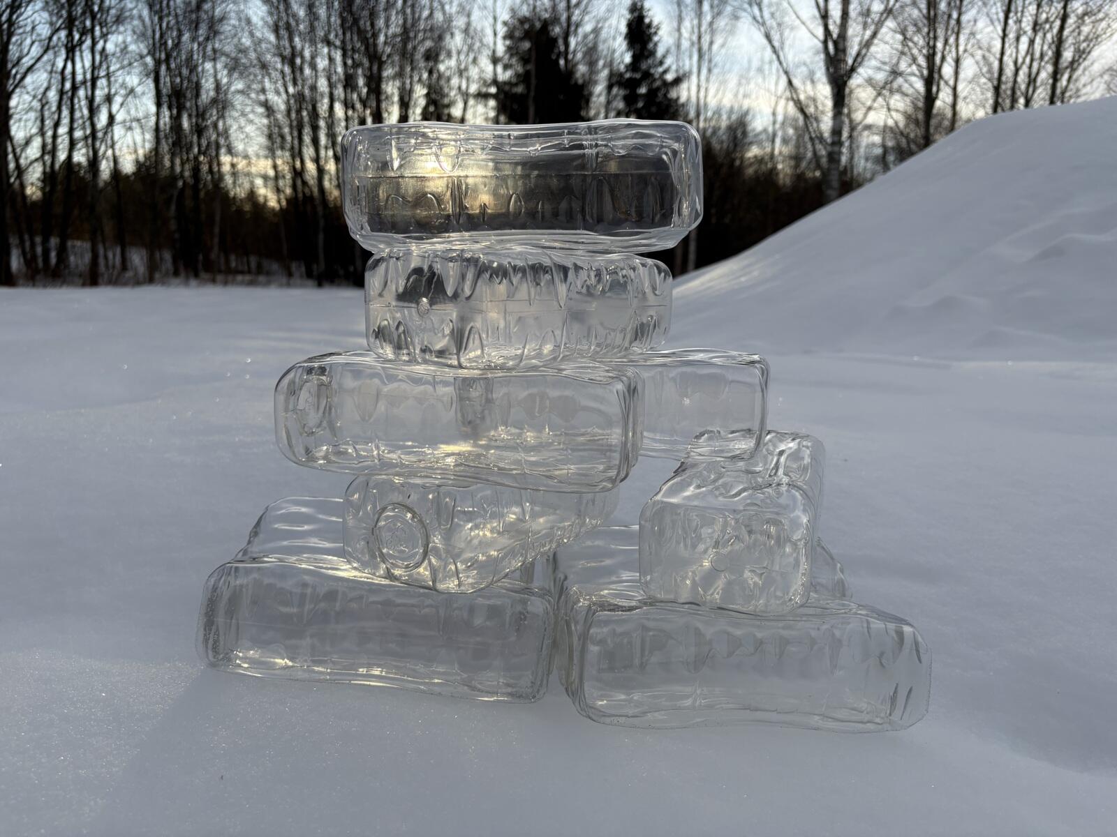 25 deler. Bygg et istårn med disse gjennomsiktige, glinsende byggeklossene som ligner på isbiter. Bygg hus, tårn og isvegger. Prøv gjerne å bygge med klossene i virkelig snø. Laget av harpiks. Mål: 21x7x10 cm. Fra 1 år.