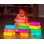Vakre trebiter av bøk i regnbuens syv farger, med en naturlig finish for å vise treverket. Ideell for å skape fantasifulle scener, oppmuntre til designevne, telle og sortere, stable og lære mer om farger. Inneholder 84 trebiter, 7 i hver form og størrelse. Fra 10 måneder.