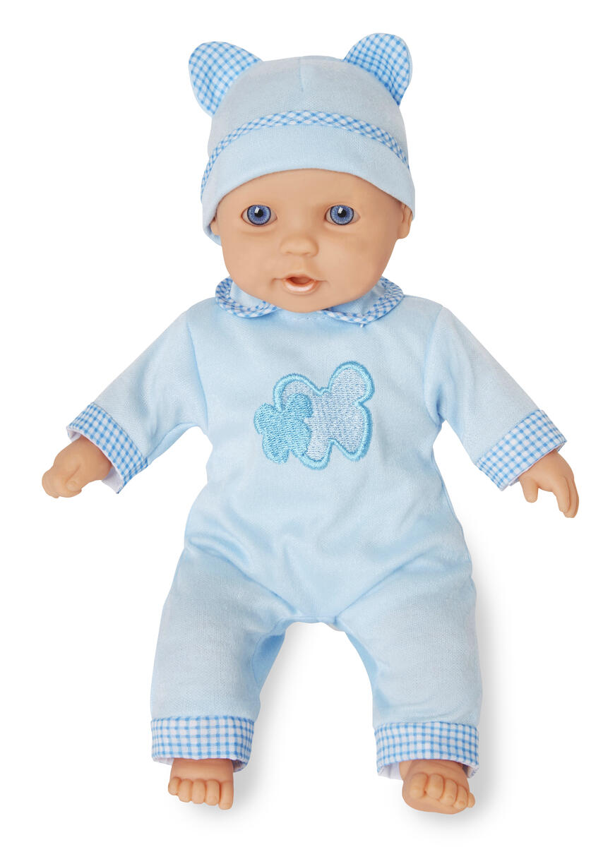 Et fint dukkesett med tilbehør. Dukke med hard kropp. Assorterte modeller, dubletter kan forekomme. Av LDPE og PVC, uten forbudte ftalater. Dukkens lengde 30 cm. Fra 2 år.