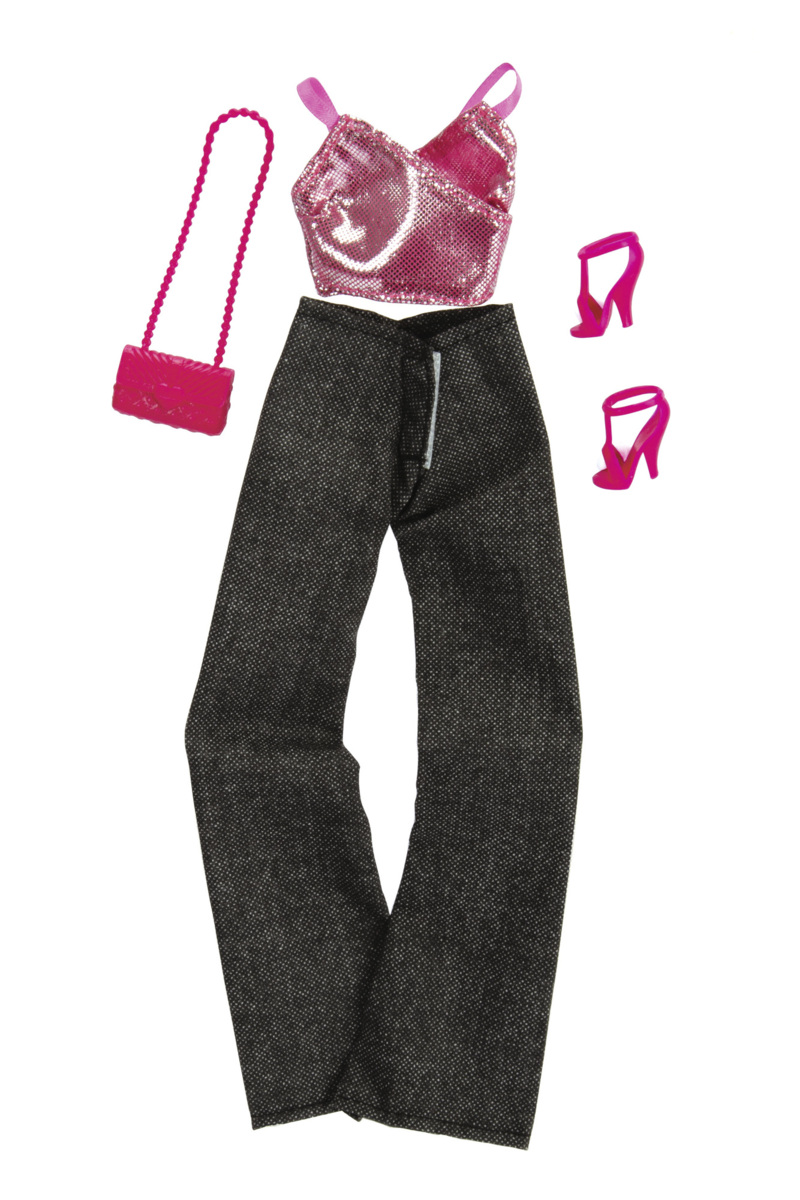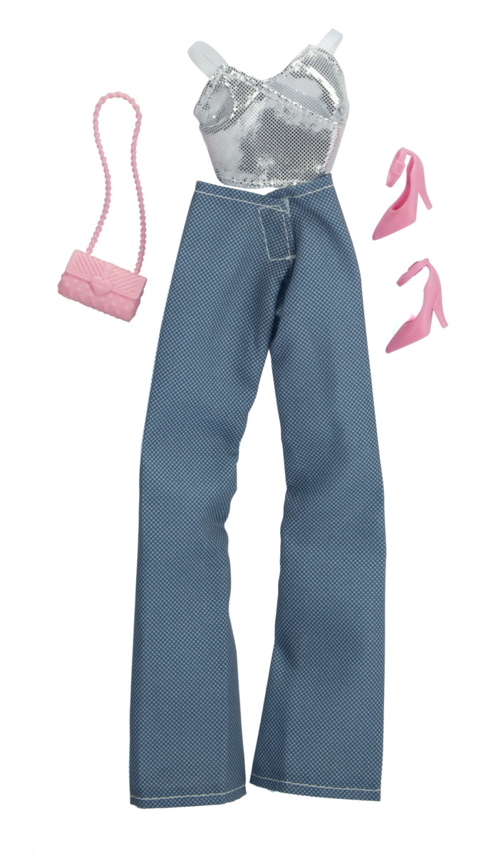 En stilig glittertopp og denimtilbehør. Klærne passer til motedukker som er 29 cm lange. Blandede modeller, duplikater kan forekomme. Dukke ikke inkludert. Laget av PVC, uten forbudte ftalater. Fra 3 år.