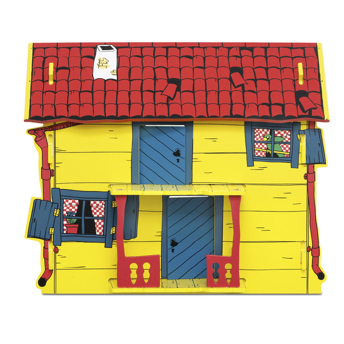 Villa Villekulla er huset til Pippi og er av tre med mange funksjoner som skaper muligheter for lek i Pippis verden. Inneholder hus, utvendig trapp, stige, trær, innvendige trapper og klistremerker med motiver av møbler og gardiner. Mål: 43x37x25 cm. Fra 3 år.