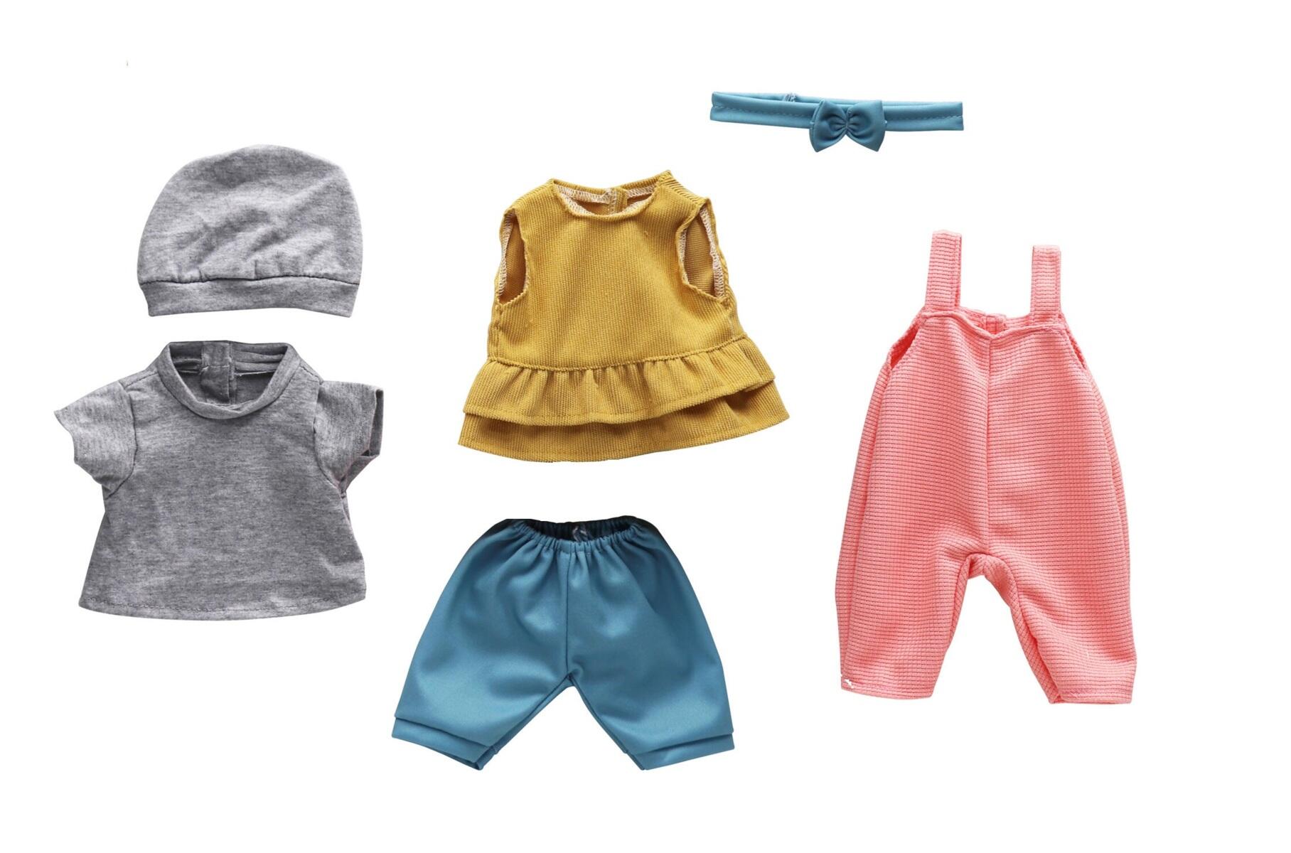 6 stk/pk. Dukkeklær som passer dukker på 30–35 cm. Fargevariasjoner kan forekomme. Laget av polyester. Maskinvask 30 grader. PVC‑fri. Fra 2 år.