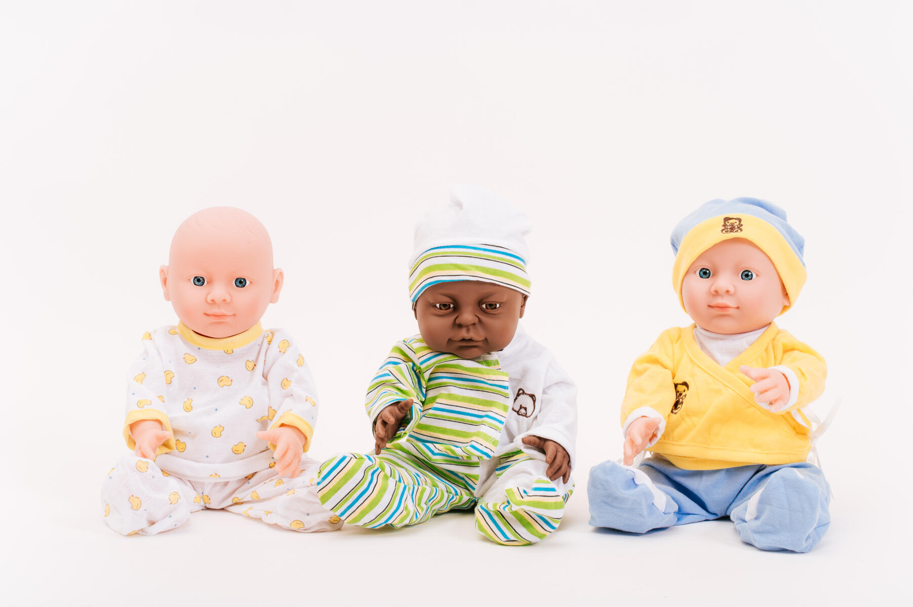 2 stk/pk. En gutte- og en jentedukke med hard kropp og bevegelige armer og ben. Dukken er konstruert slik at armer og ben er lett bevegelige. Dersom de ved et uhell dras av dukken er de lette å sette på plass igjen. Virkelighetsnær lys hudfarge. Lengde 38 cm. Av PVC, uten ftalater. Fra 3 år.