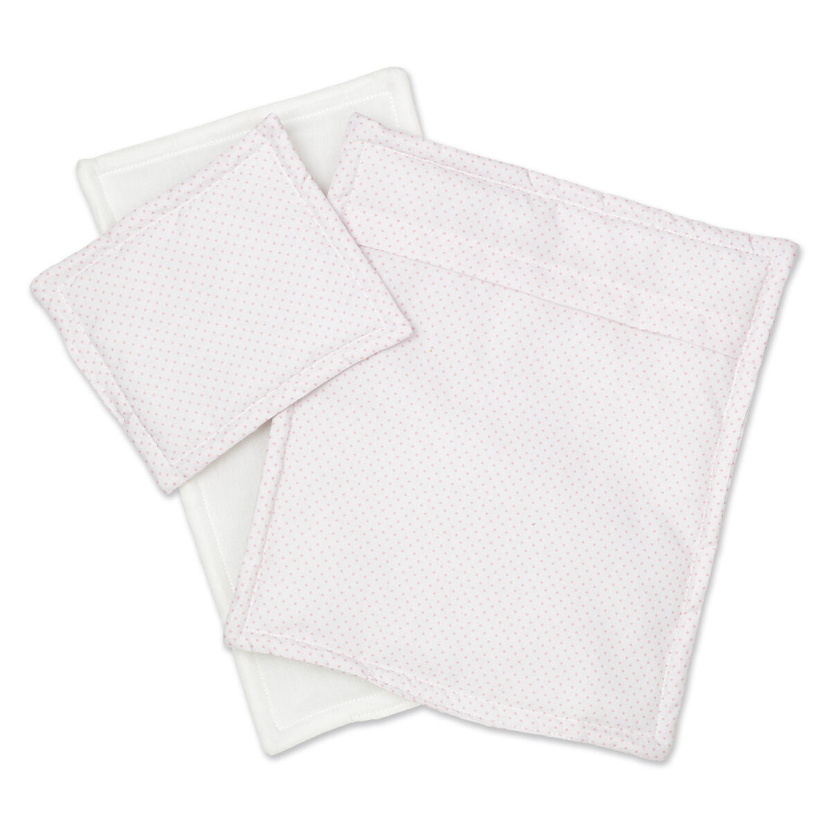 3 deler/pk. Sengesett til dukkesengen og dukkevognen. Settet inneholder madrass, dyne og pute. Mål: 43x32 cm. Farger kan variere. Laget av polyester. Fra 3 år.