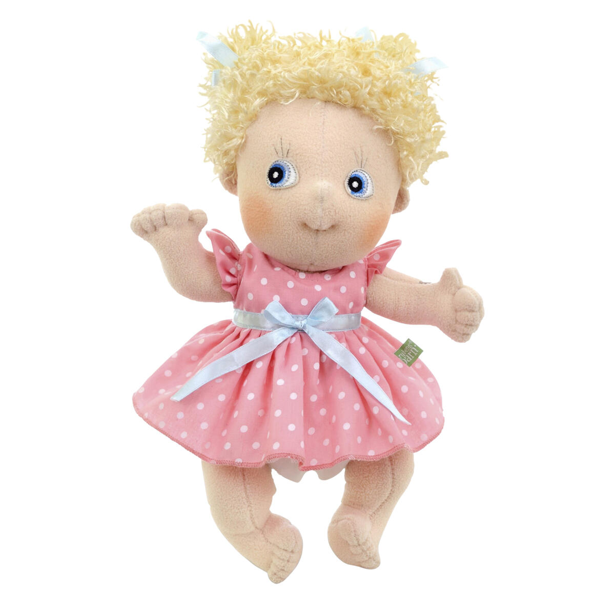Fin og myk tøydukke med egen personlighet og klær som kan tas av. Dukke av polyester, fylt med resirkulert polyester. Lengde 32 cm. Fra 0 år.
