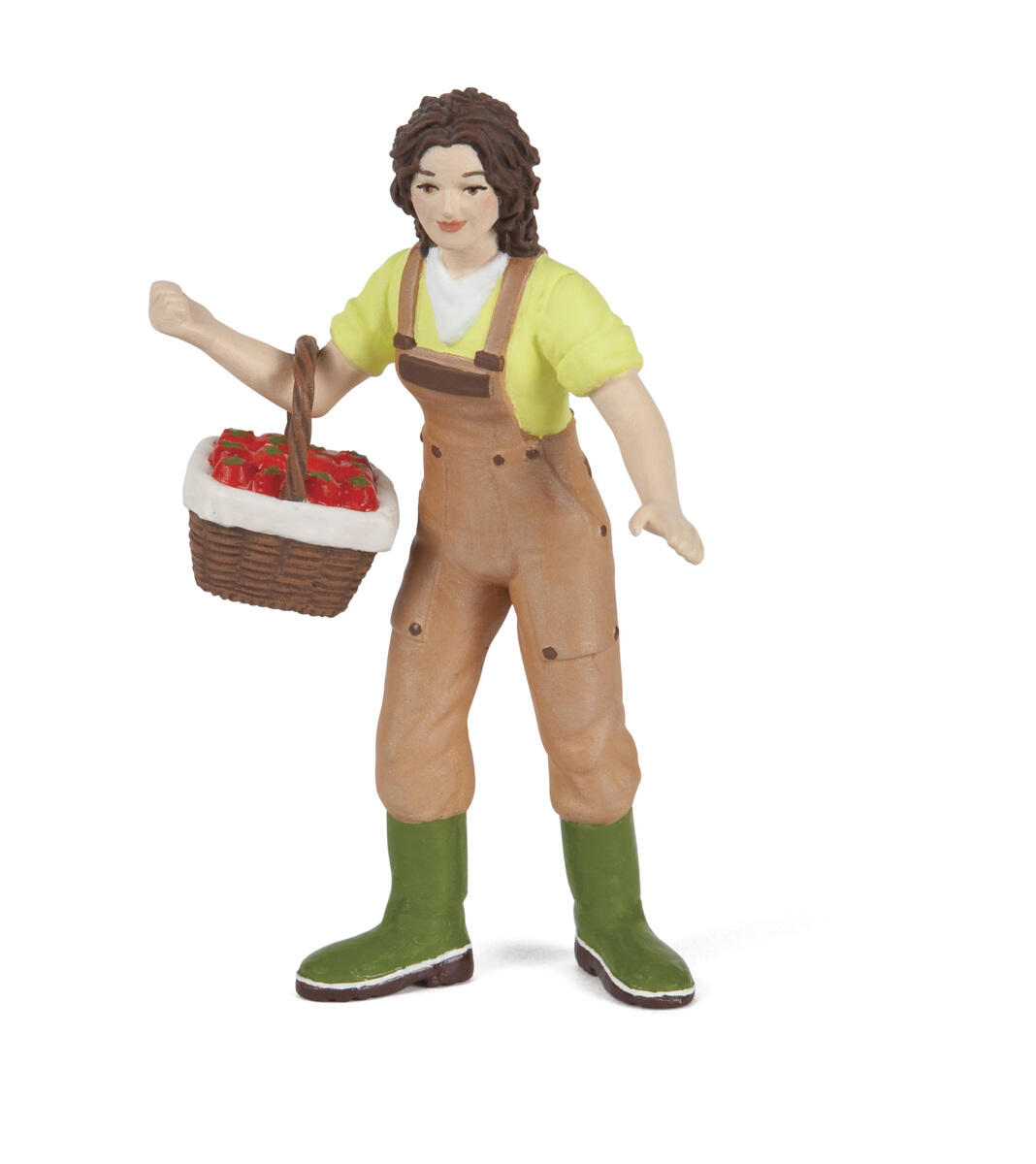 En bondegård med 19 tilhørende bondegårdsdyr. Huset har tak som kan tas av. Høyde 25 cm, lengde 60 cm. Av kryssfiner. Dyrene er håndmalte og setaljrike. Mål: 4-15 cm. Av TPE. Gjerde i plast. Lengde pr del 22 cm. Fra 3 år.