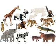 Fine og detaljrike lekedyr. alligator, neshorn, leopard, tiger, kamel, sebra, panter, giraff, løve og elefant. Lengde 10-19 cm. Av PVC uten ftalater. Fra 3 år.