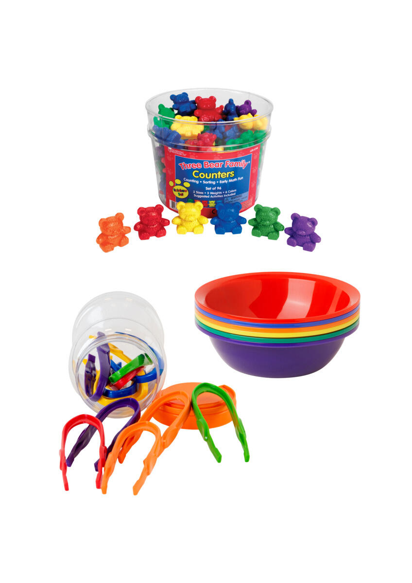 216 deler. Stort sett med skåler, figurer og pinsetter for å trene hånd-øye-koordinasjon. Samtidig kan man øve på sortering. Laget av ABS, PP og HDPE. PVC-fri. Fra 3 år.