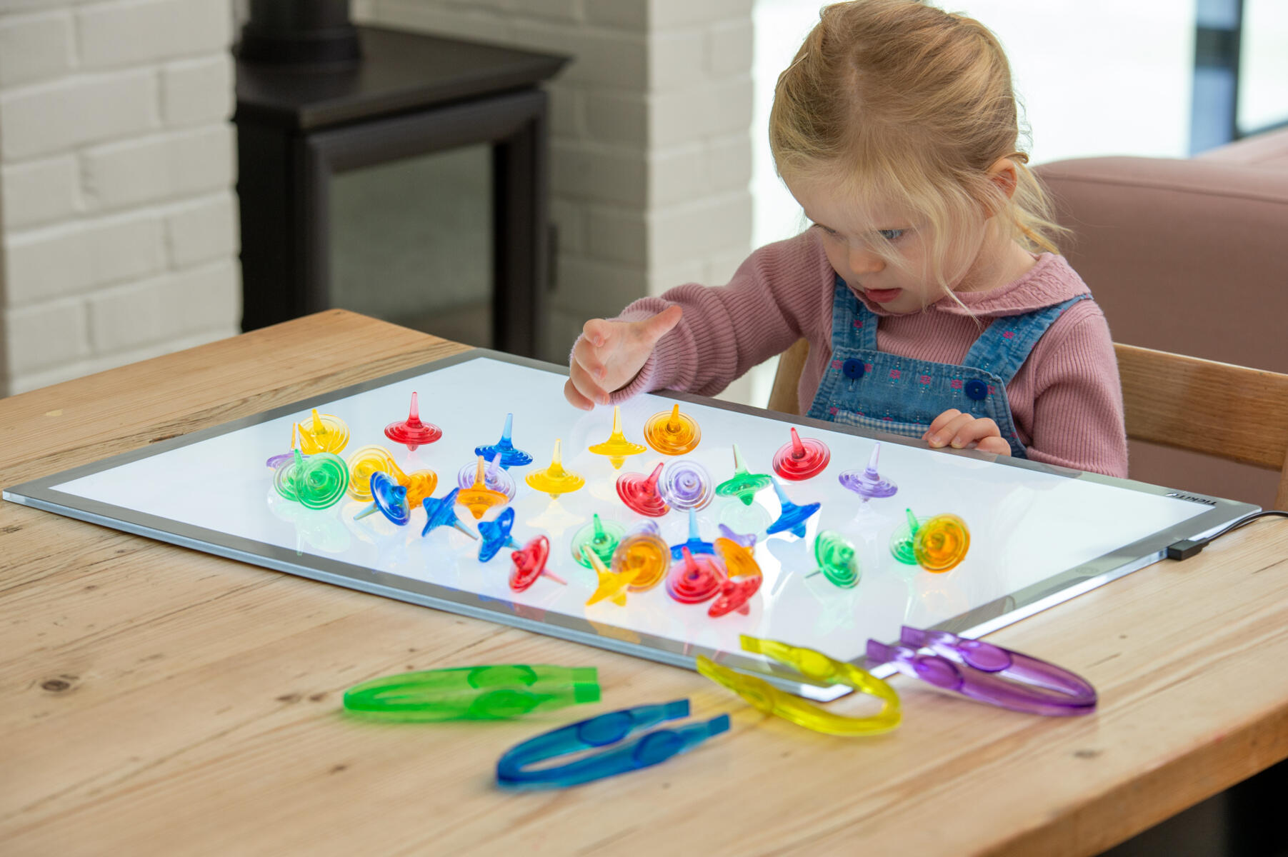 Kombiner IKT, stimulansrespons og årsak og virkning med finmotorikk, sammen med et ønske om å utforske. Hver del har ulike teknikker som kreves for at lyset skal tennes. Du kan trykke, rotere, dra eller skyve for å få sirkelen til å lyse.En sensorisk tavle som kan monteres på vegg eller brukes på gulv eller bord. Krever 3 x AAA-batterier (ikke inkludert). Mål: 25x80x4 cm. Fra 10 måneder.