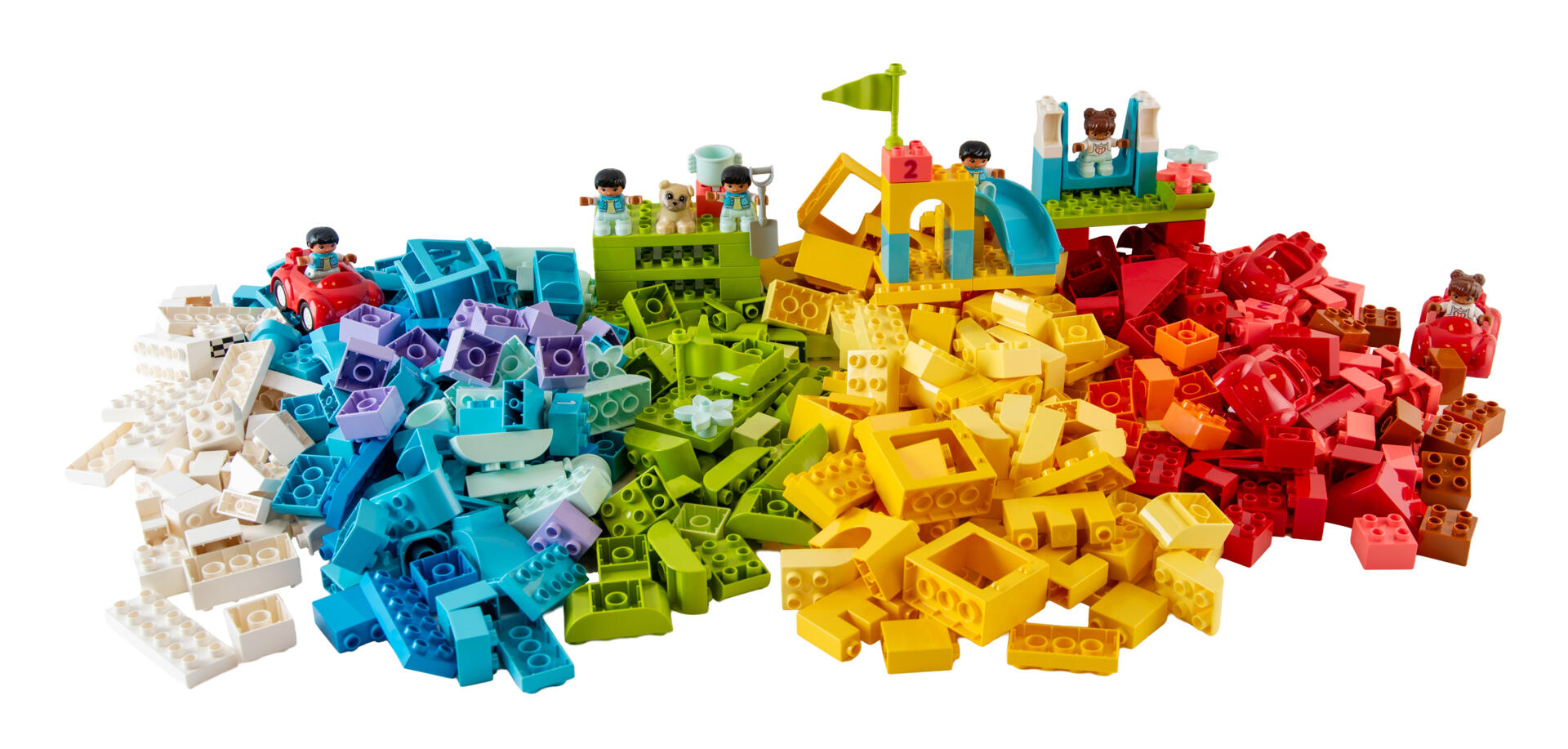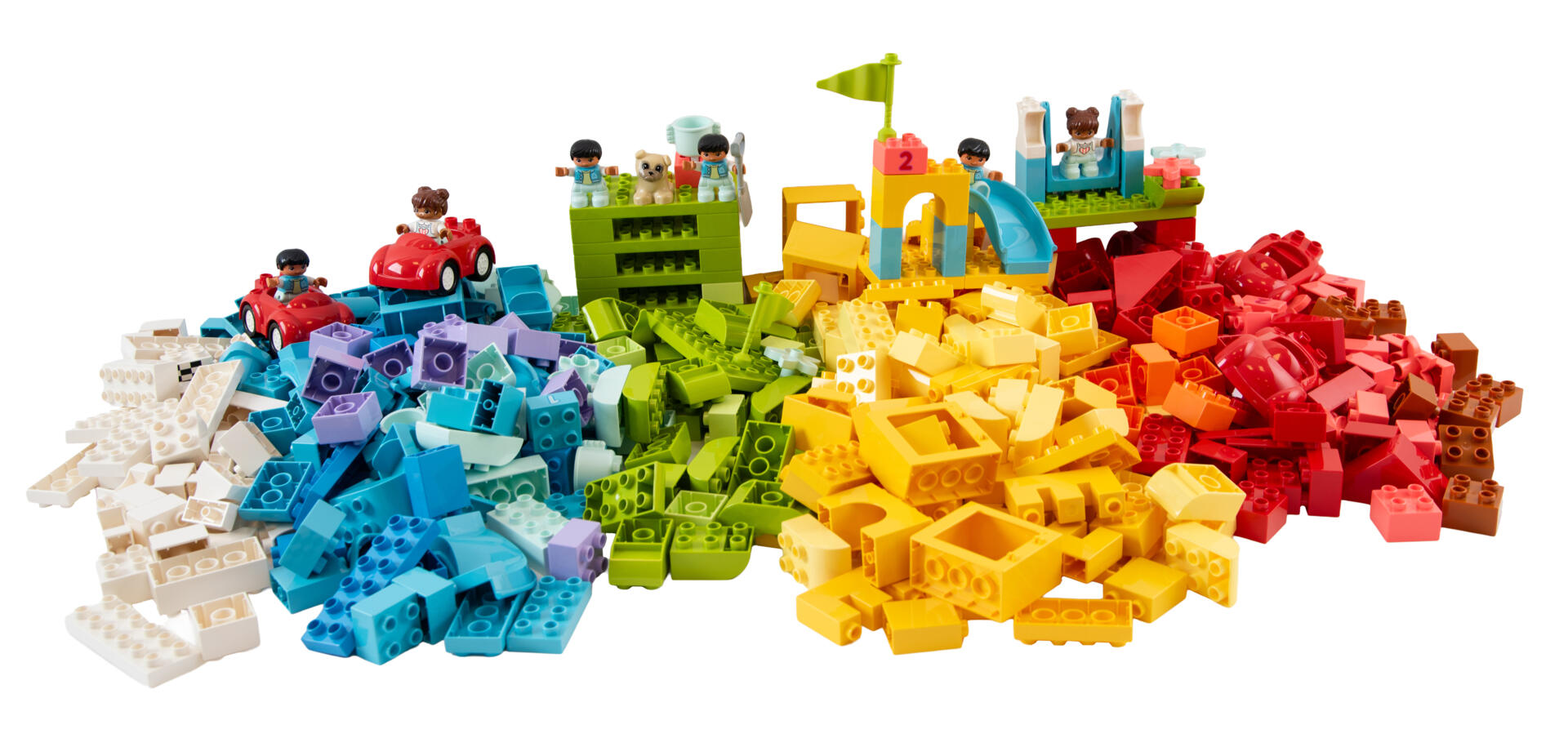 510 deler. Et stort DUPLO-sett for å bygge mange ulike miljøer og modeller. Inneholder forskjellige farger, figurer og spesialdeler. Materiale: ABS. PVC-fri. Fra 18 måneder.