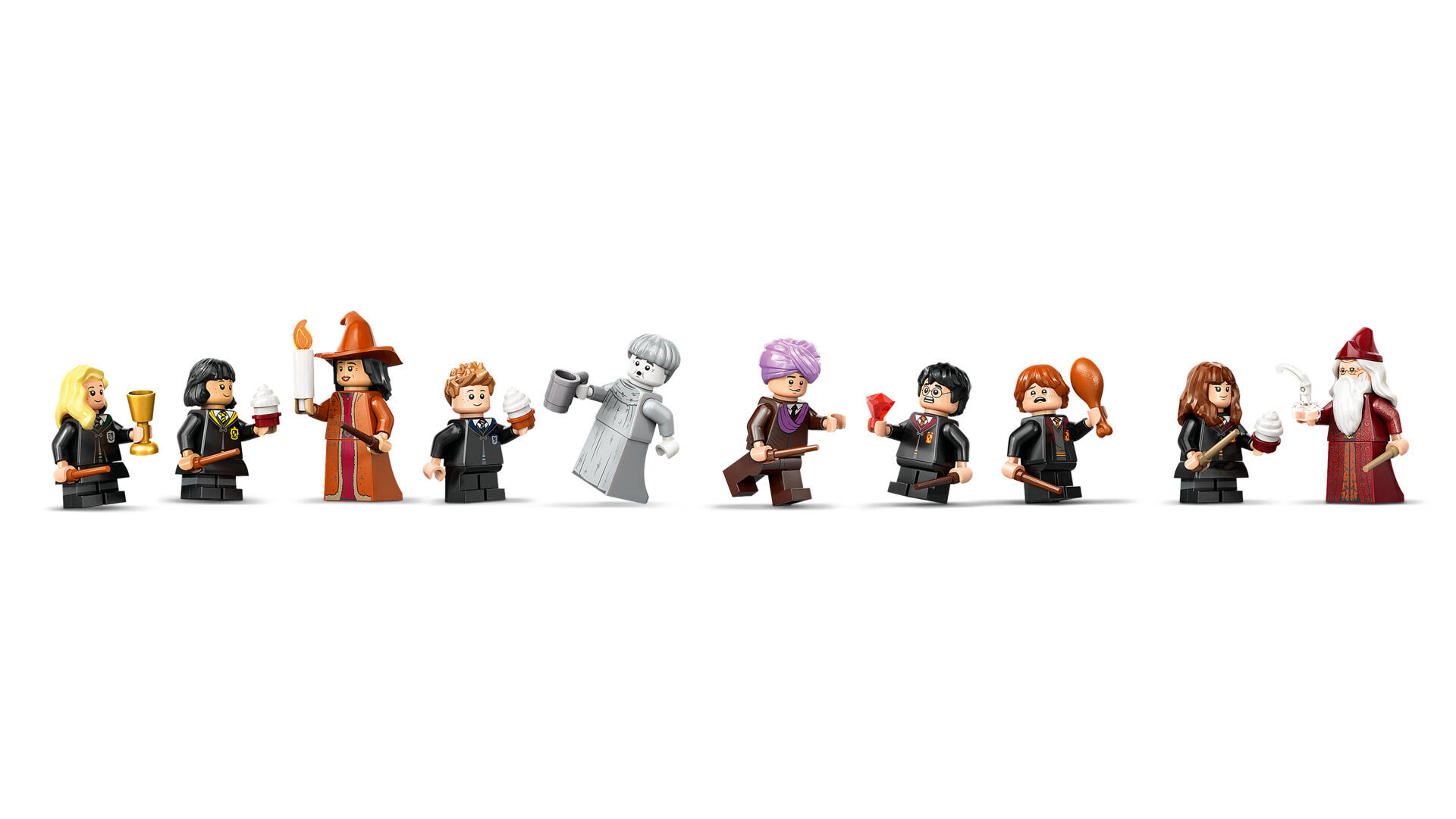 1732 deler. 11 minifigurer følger med: Harry Potter™, selvfølgelig, Ronny Wiltersen™, Hermine Grang™, Albus Humlesnurr™, professor Krengle, Leanne, Daphne Greengrass, Terry Boot, professor Vektor, Tjukke munkebroren og et fjelltroll. Dette er den største LEGO-klossversjonen noensinne av den store salen, med mange autentiske detaljer som svevende lys og en illusjon av himmelen. Utforsk også gårdsplassen, kjellerhvelvene med en hemmelig inngang og 3 detaljerte rom – et bad, en korridor og Håsblås oppholdsrom, som alle kan skyves ut for enkel lek. Den gratisappen LEGO® Builder guider barna gjennom et intuitivt byggeeventyr med verktøy som lar dem zoome inn og rotere modeller i 3D, lagre sett og holde oversikt over fremdriften.