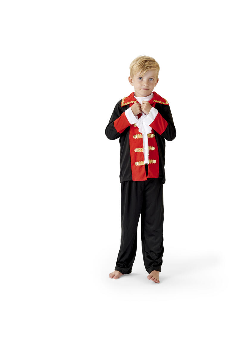 Velkommen til eventyrenes verden der prinser og prinsesser blir virkelige. Utkledningspakke kongekappe, prinsejakke og bukse samt prinsessekjole. Størrelse 3-5 år. Hver drakt er av ulike stoffmaterialer og noen drakter har deler av polypropen.