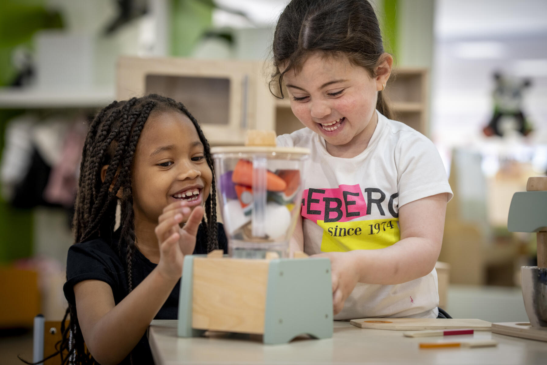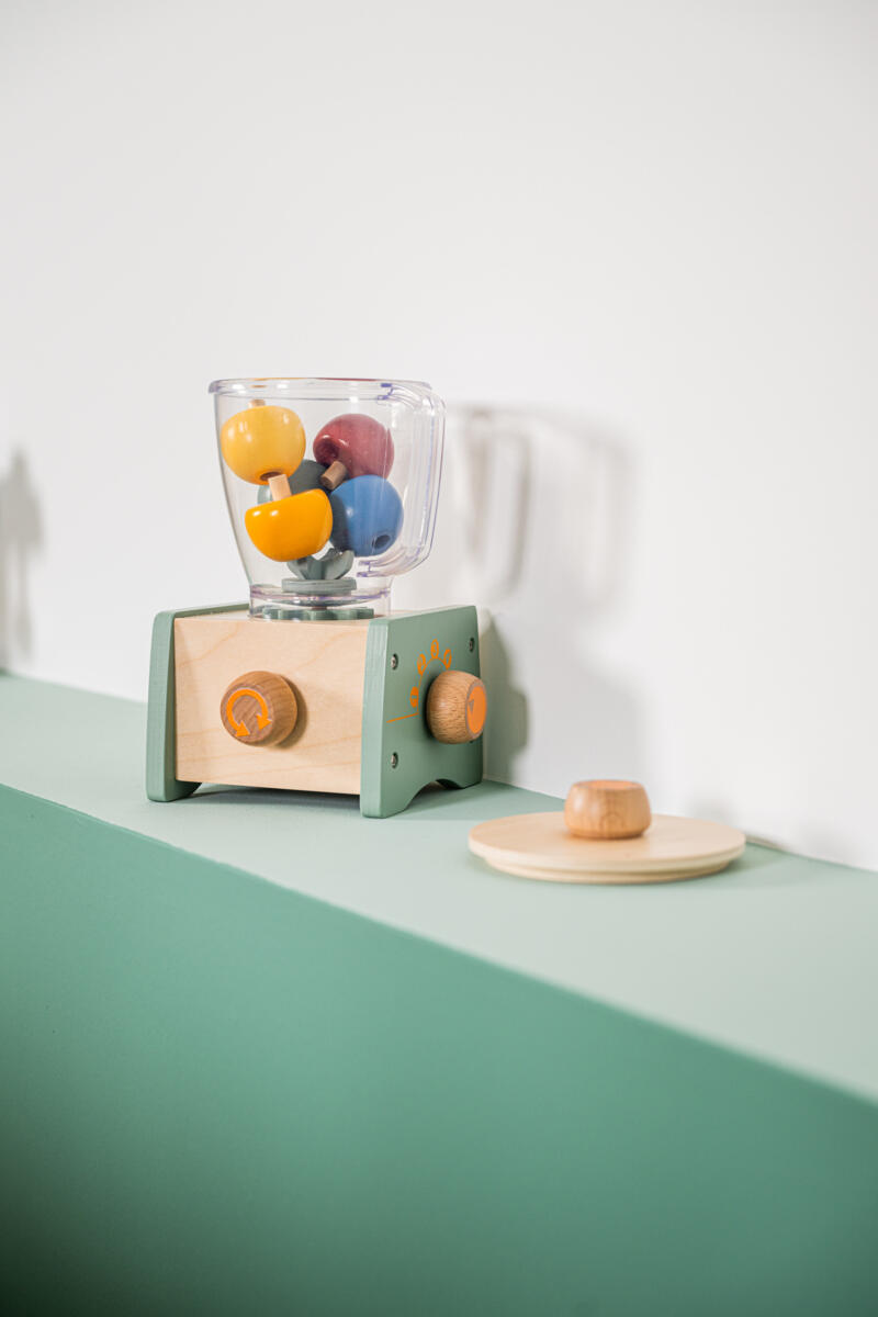 6 deler/pakke. Settet inneholder et vaffeljern og en lekemat med 5 vaffelhjerter. Knappen på lokket klikker når du dreier på det slik at du kan justere varmen. Mål på vaffeljernet er 13 cm i diameter. Mål per vaffelhjerte er 4,5 cm. Av FSC-merket tre. Fra 3 år.