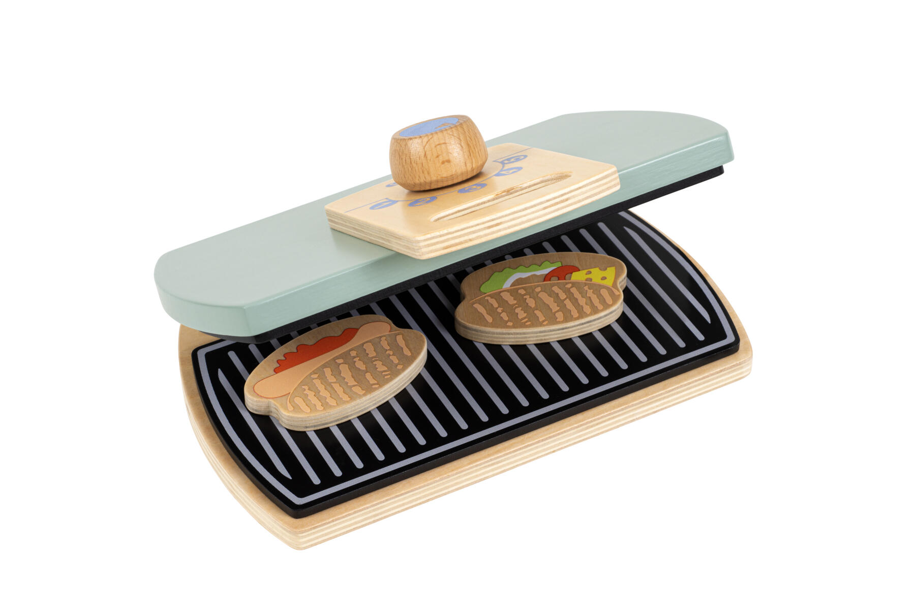 Komplett sett med lekekjøkkenmoduler som gjør rolleleken morsommere. Settet inneholder kjøleskap, komfyr, oppvaskmaskin og vask. Endehylle følger ikke med. Alle delene har dører som kan åpnes og funksjoner som gjør dem realistiske. Leveres umontert. Skal festes i vegg. Høyde kjøleskap 79 cm. Øvrige 55 cm. Totalbredde 185 cm dybde 36 cm. Laget av FSC-sertifisert kryssfiner og tre. PVC-fritt. Fra 3 år.
