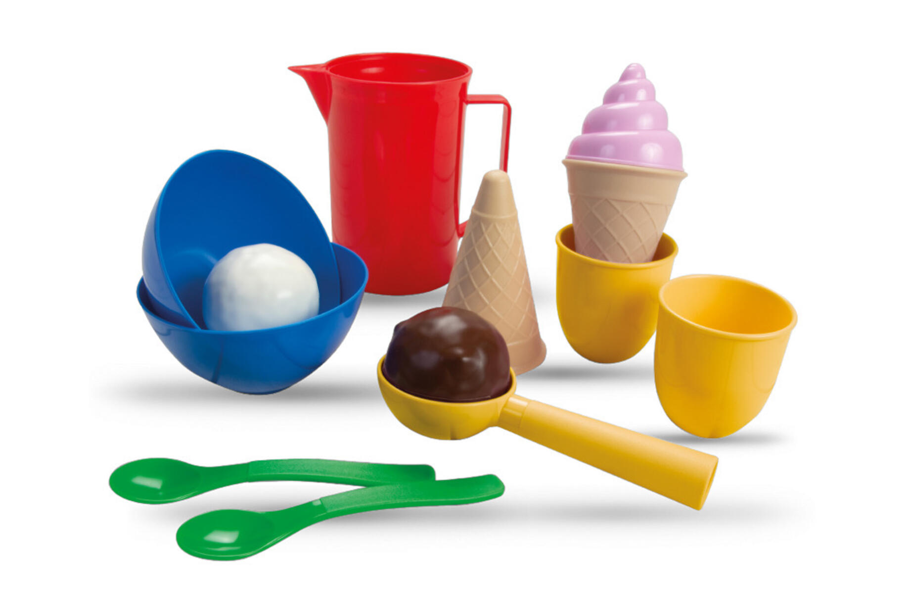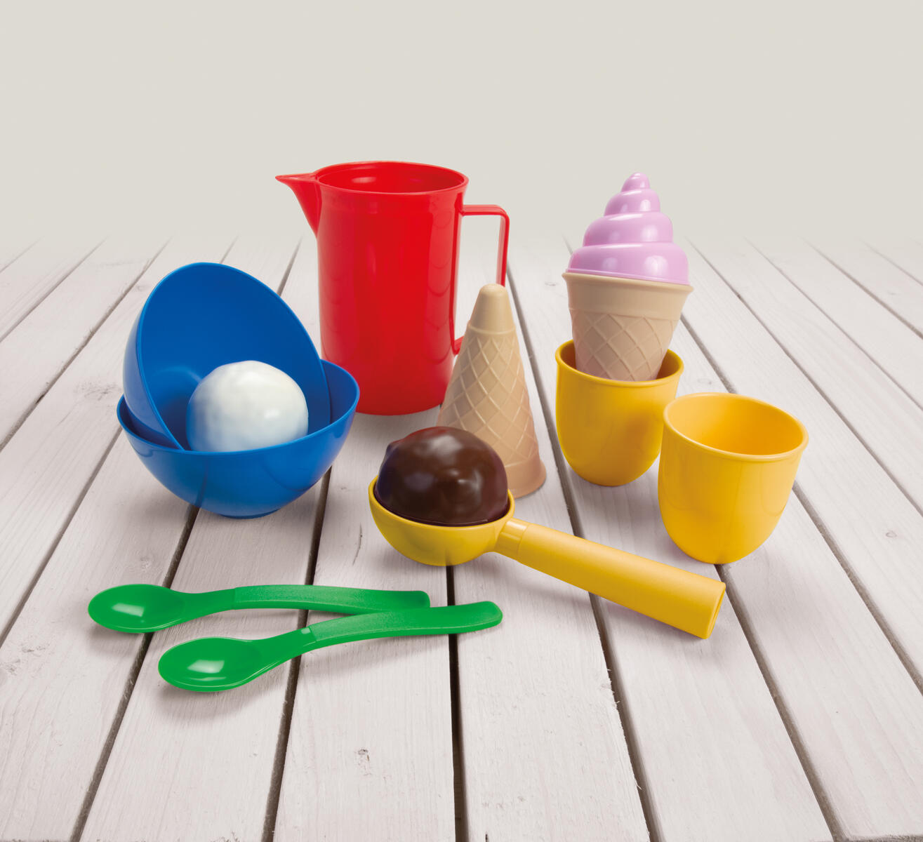 56 deler/pk. Et is- og cupcakesett der du kan blande smaker og kuler i iskjeks eller muffinsformer. Barn kan lage en rekke kombinasjoner. Matvarer av PP og resinplast. Svanemerket. Fra 2 år.