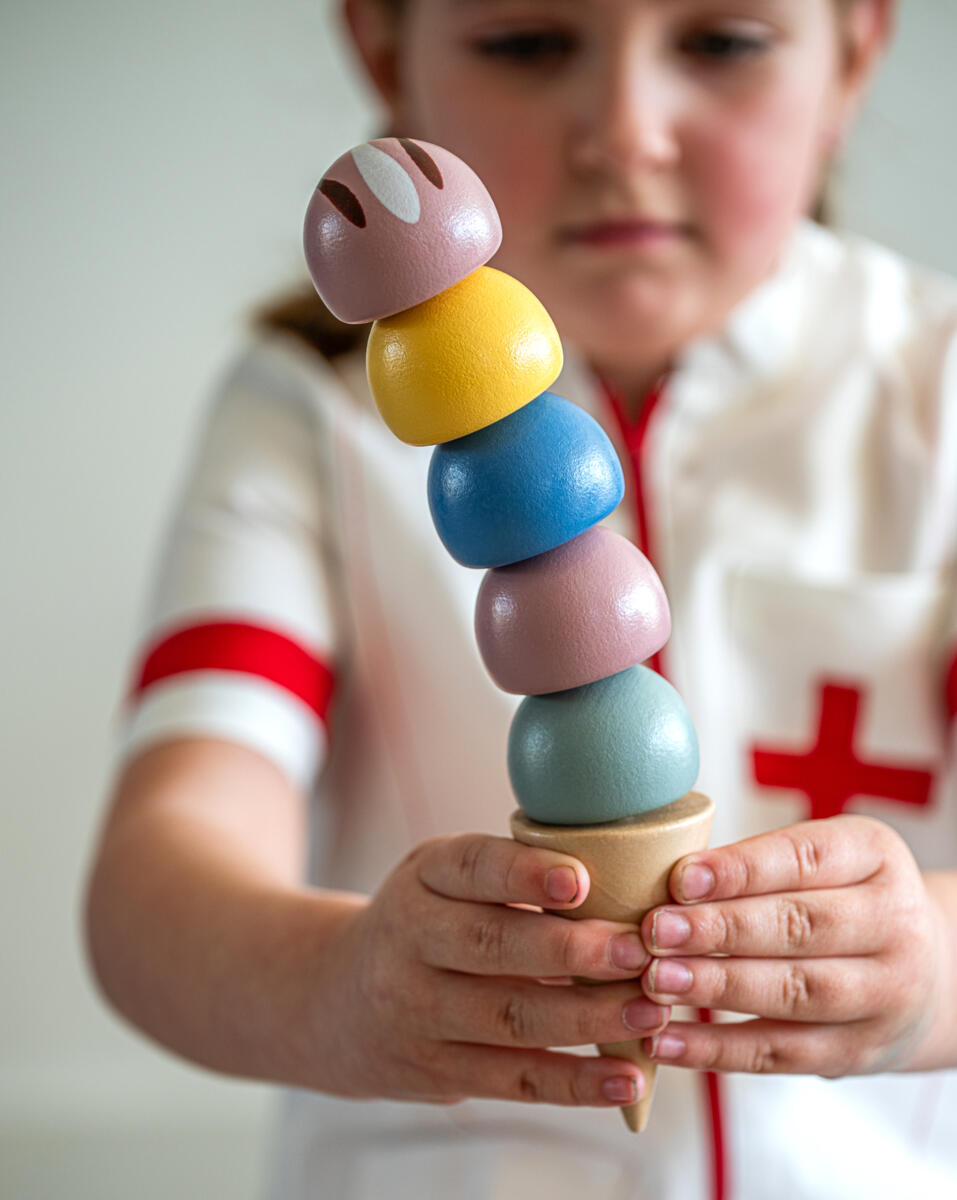 30 deler. Del opp pålegget og lag et flott smørbrød. Settet inneholder 3 skjærebrett, 3 kniver og matvarer av tre. God kvalitet. Laget av FSC-merket tre. Fra 3 år.