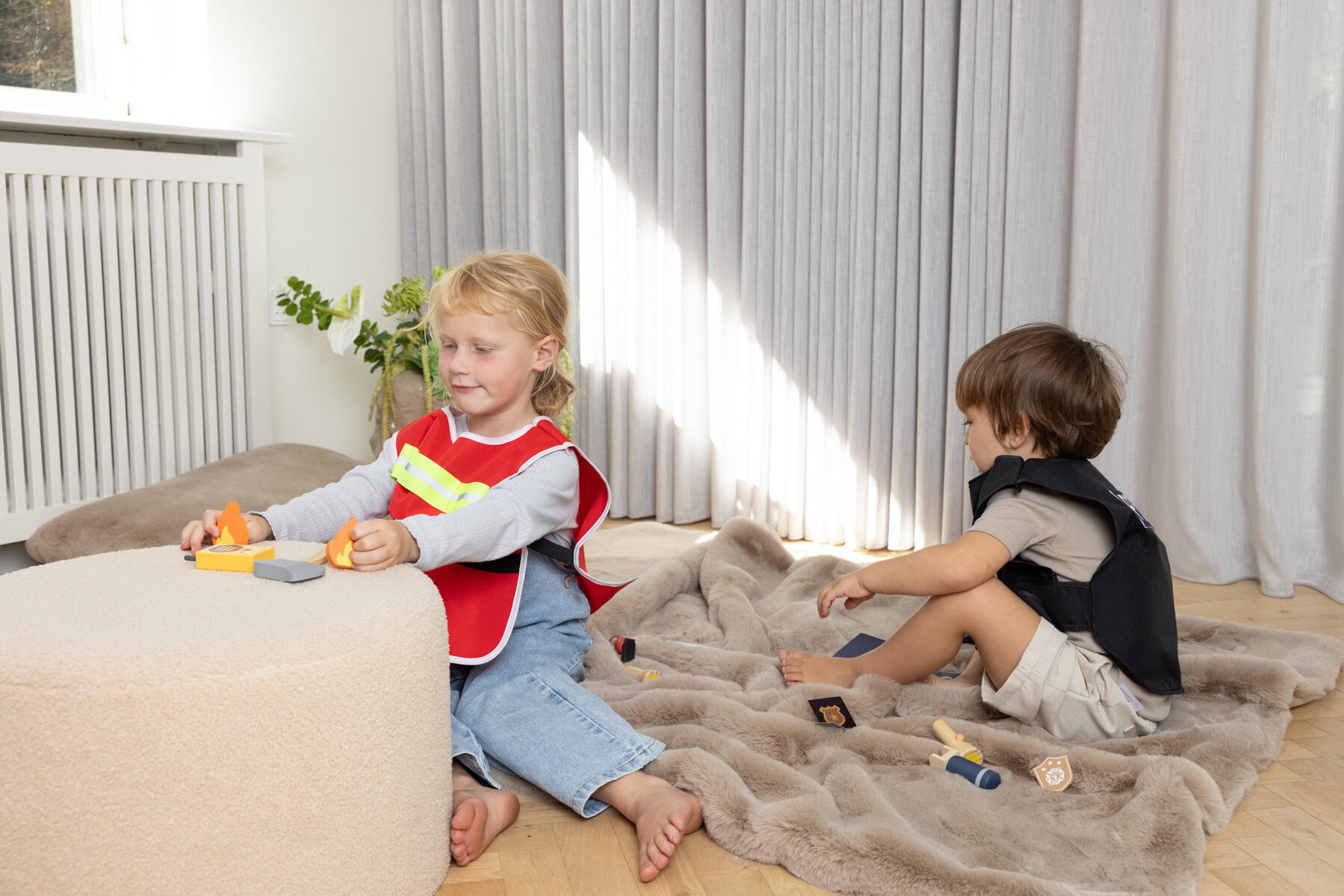 6 deler. Inneholder brannslukker, walkie-talkie, lommelykt, brannvest samt brekkjern og øks. Perfekt for fantasifull lek og rollespill, der barn kan utvikle empati, samarbeidsevne og handlekraft. Laget av polyester, bomull, FSC-merket tre og MDF. PVC-fritt. Fra 3 år.