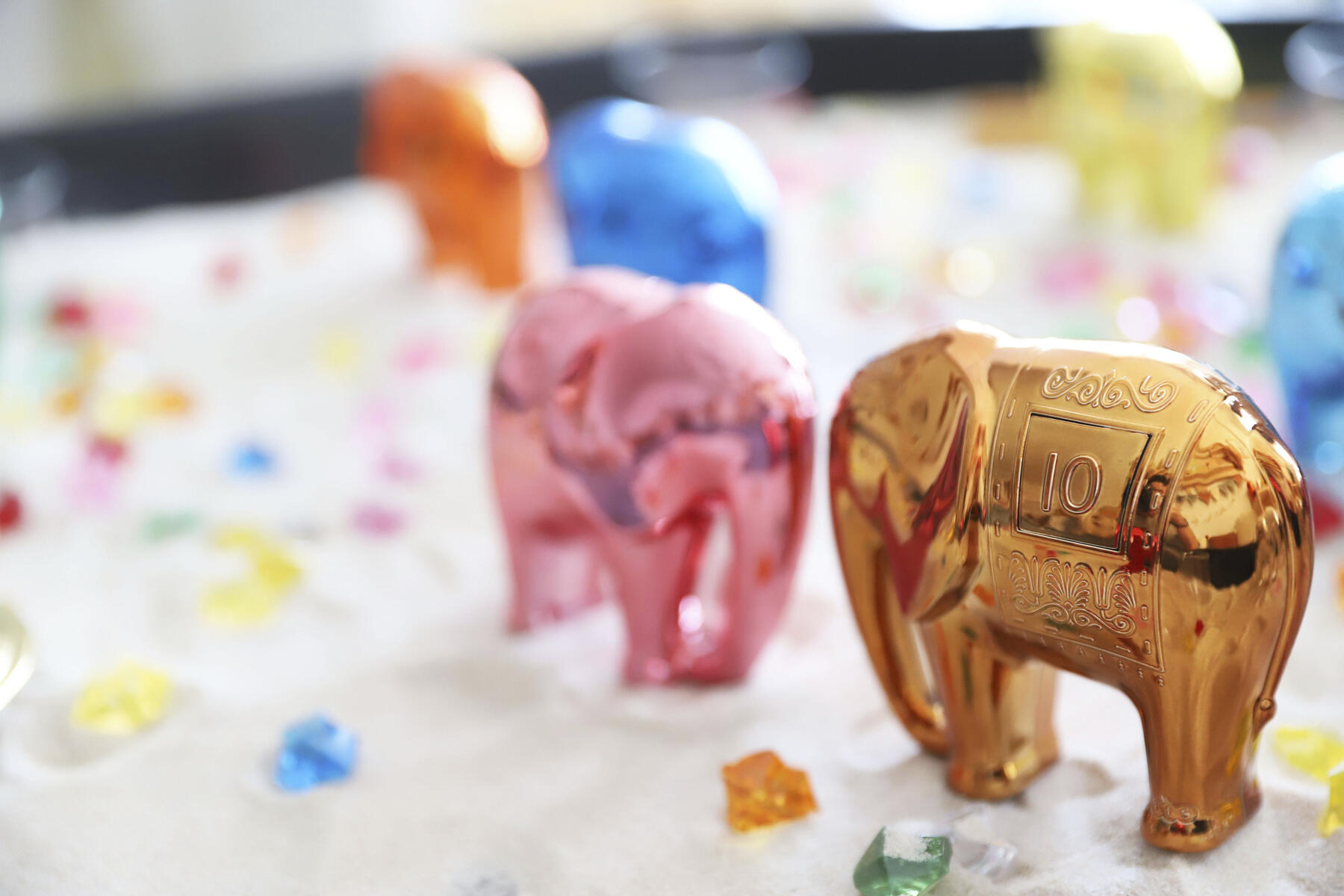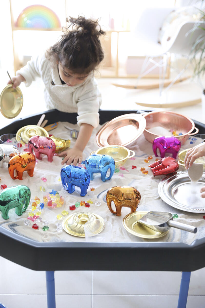 10 stk/pk. En vakker samling av nummererte elefanter med en metallisk overflate for bruk i matematikk. Legg merke til forskjeller, tell, sorter og sett elefantene på rekke. Av ABS. Mål: L12xB6xH10 cm. Fra 0 år.