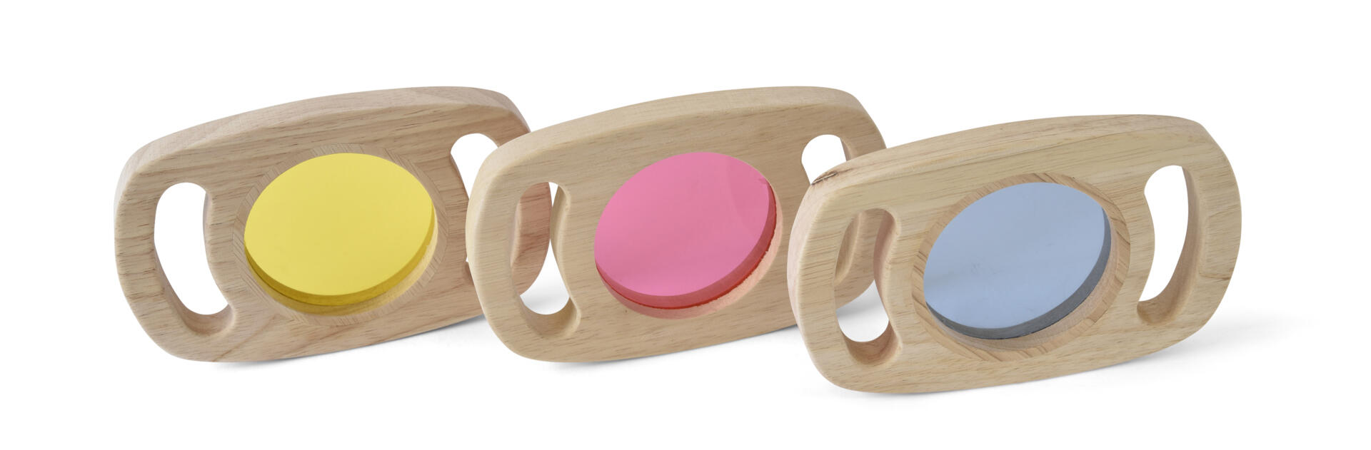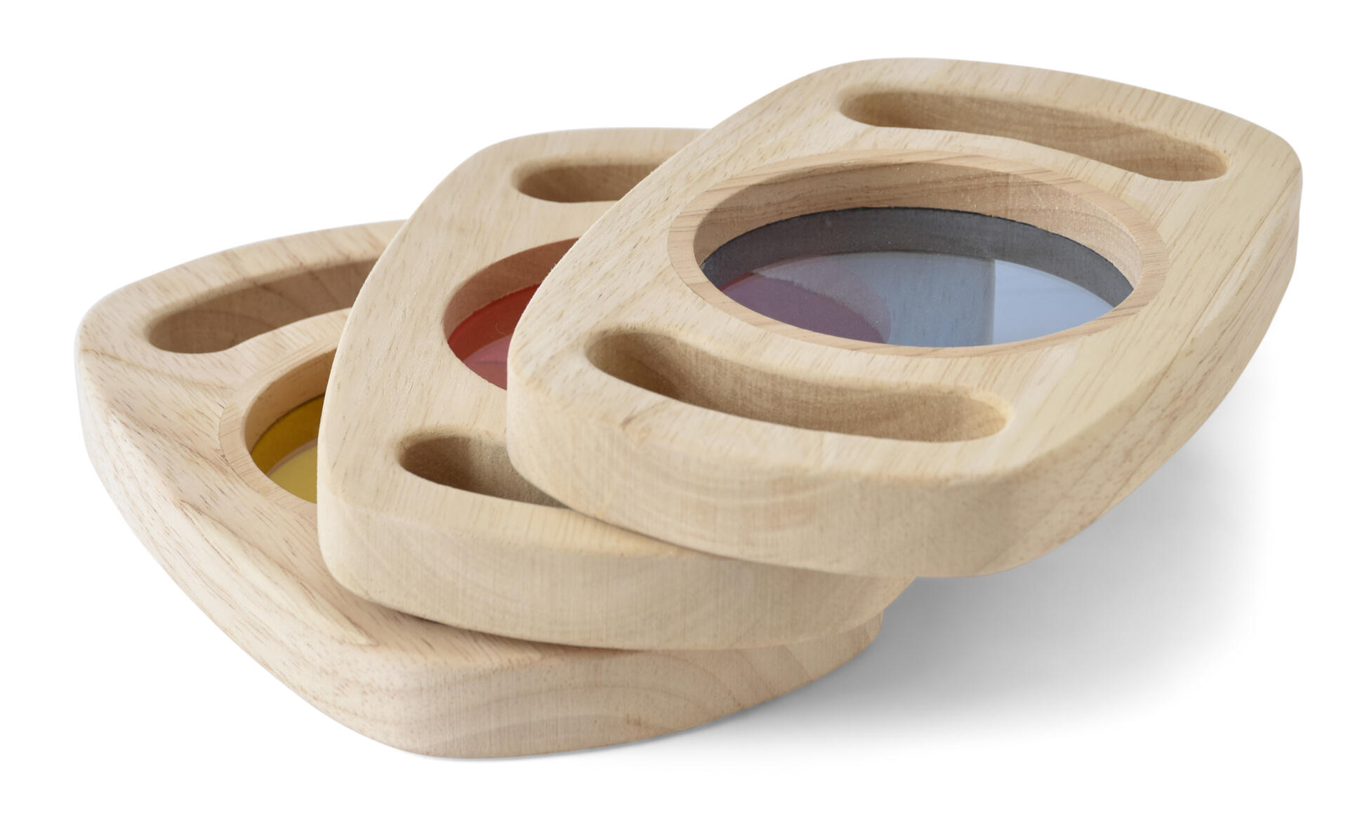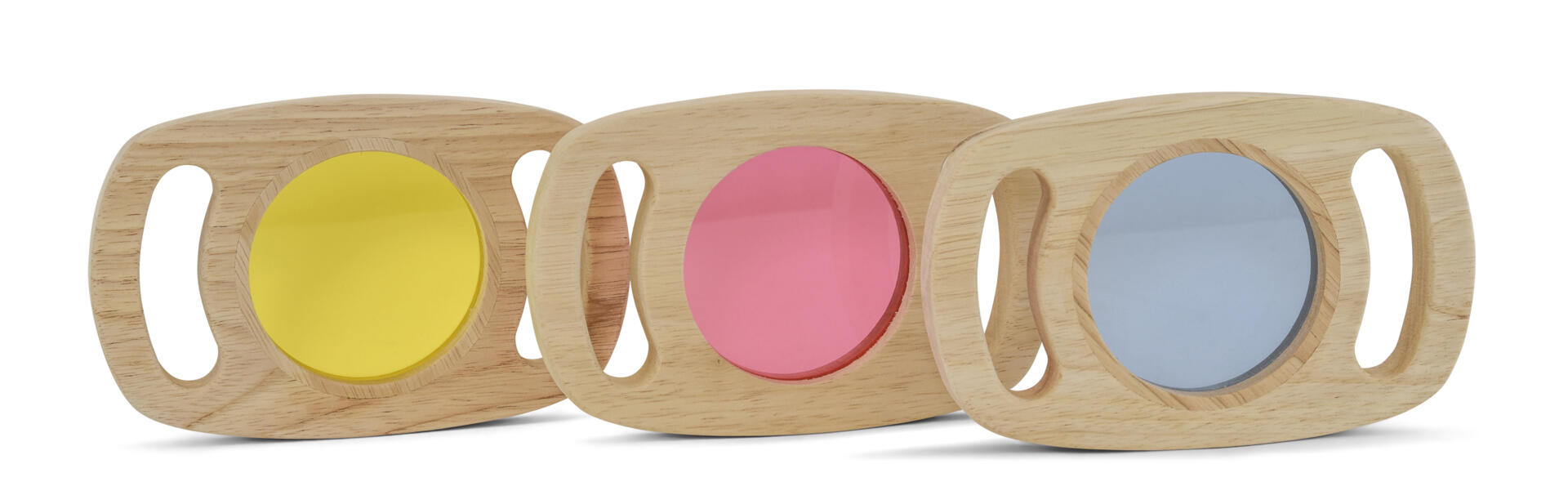 8 stk/pk. Inneholder hemisfærer i ulike, flotte transparente farger. Barna kan undersøke verden rundt seg og se den i ulike farger. De kan sette sammen 2 klosser til en sirkel og fargene blandes da til en ny nyanse. Legger du hemisfæren på et objekt, førstørrer det 4-5 ganger. Bruk de gjerne på et lysbord for maksimal sensorisk opplevelse. Mål: Ø5 cm. Fra 0 år.