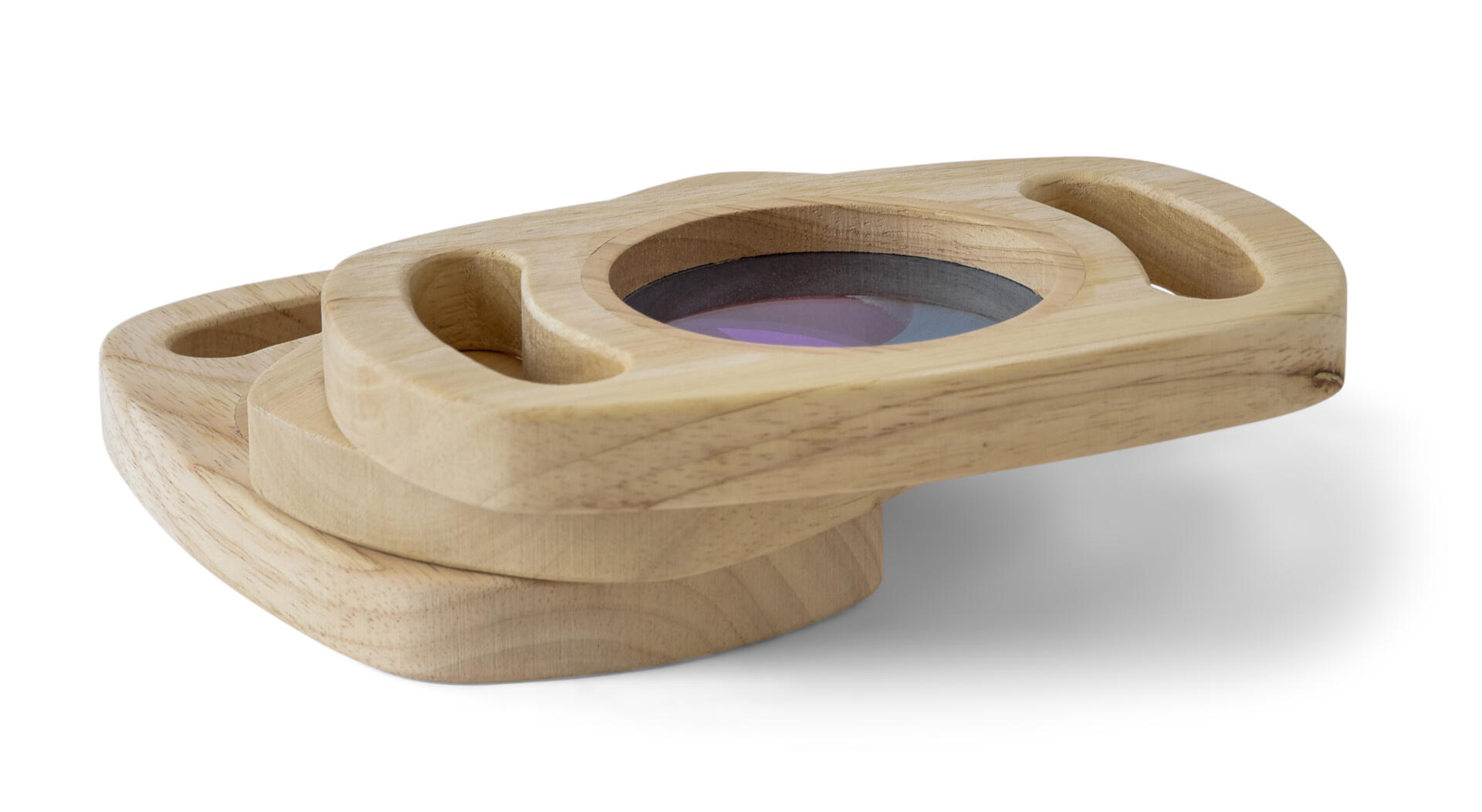 3 stk/pk. Glitrende paneler som er lette å holde i. Vri og vend på panelene for å få glittervæsken til å bevege på seg. Fine til sensorisk oppdagelse og øker ordforrådet. I fargene lilla, sølv og gull. Av tre. Fra 1 år.