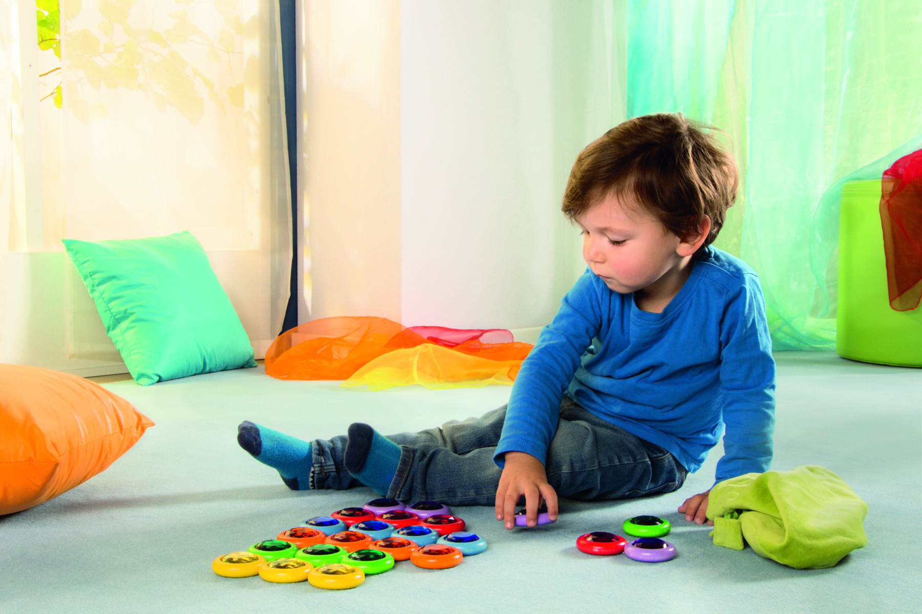 5 stk/pk. Store sanserør med forskjellig innhold som kan utforskes på flere ulike måter. Visuelt ved å se på det, auditivt ved å lytte, fysisk ved å utforske friksjon og vekt. Innholdet består blant annet av skum, fargerike pomponger, geometriske treformer og metall. Alt er innkapslet i et trygt rør. Mål: 6 cm i diameter, H47 cm. Laget av ABS-plast og Poly+ (plasttrekompositt). Fra 1 år.