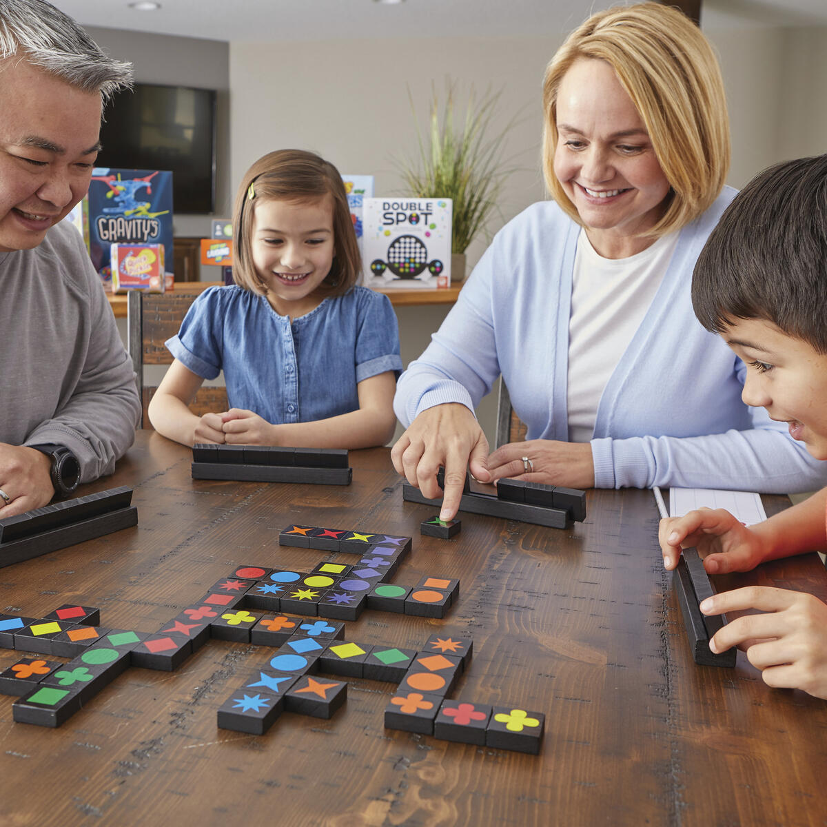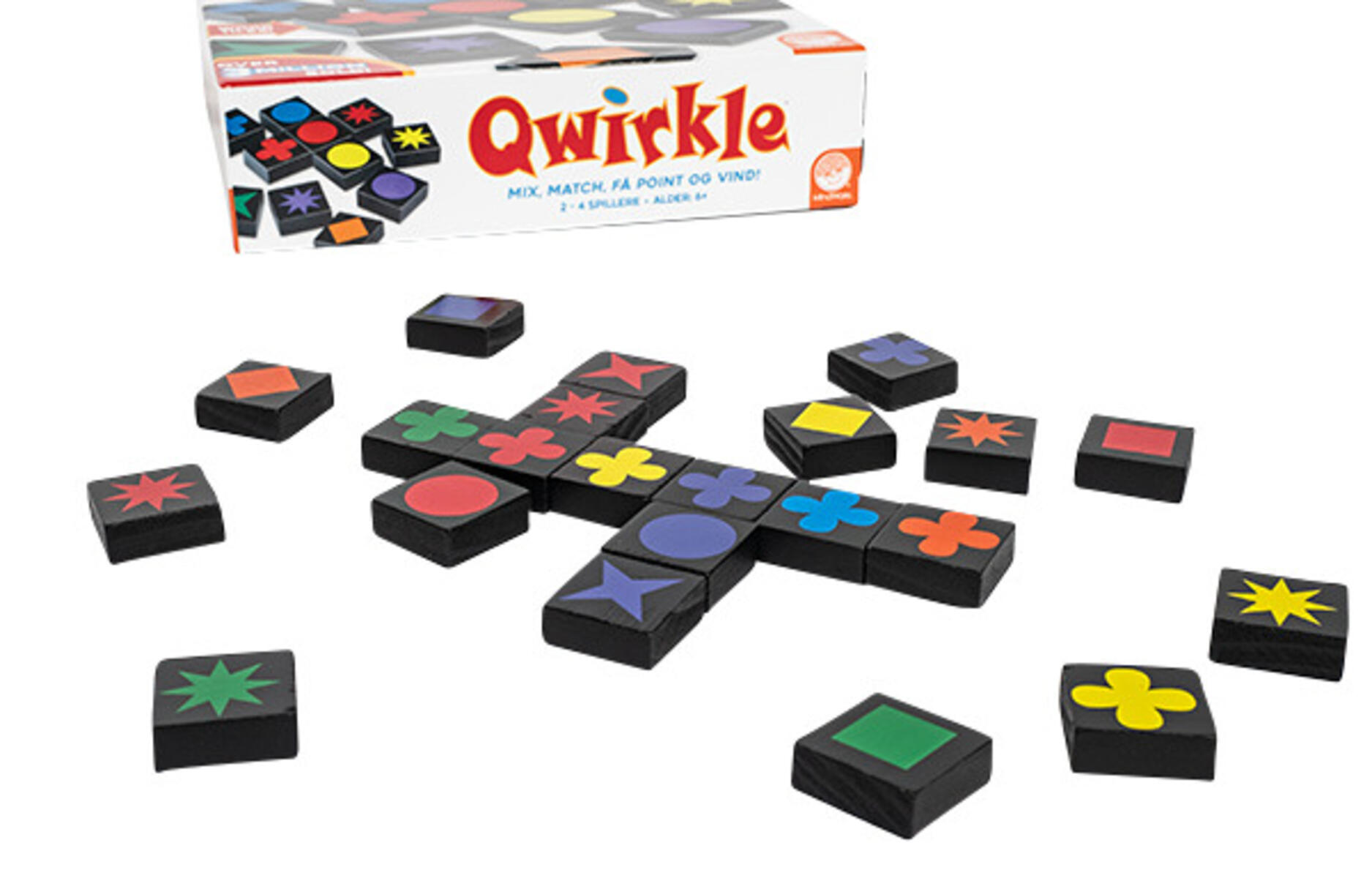 Qwirkle er spillet som lærer unge spillere farger, figurer, matematikk, tidlig strategi og problemløsende ferdigheter. Spilleren får poeng ved å bygge rader og kolonner med fargerike brikker som enten har samme farge eller samme form, uten å skape duplikater; lag en rad med alle seks på rad og du får en "Qwirkle". For 2 til 4 spillere. Fra 6 år.