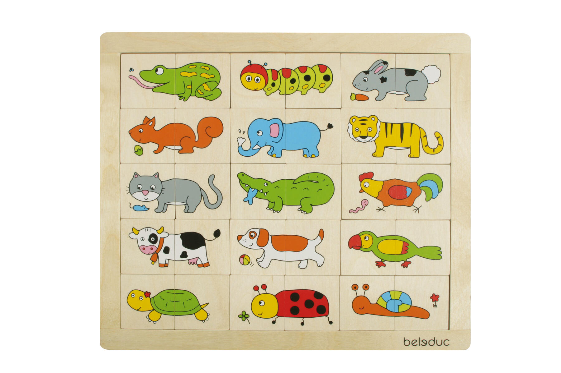 Et taktilt lotto for de minste barna. Del ut lottobrikkene, putt trefigurene i tøyposen og la barna etter tur kjenne om de kan finne figuren som matcher brikken. Spillet inneholder 24 trefigurer, 24 brikker og en tøypose. Fra 2 år.