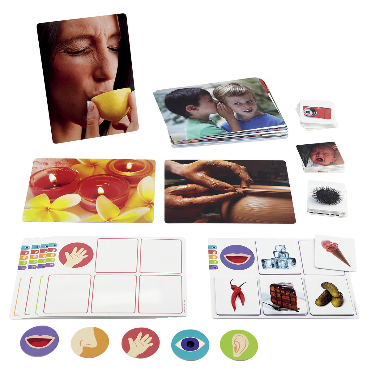 Kombiner sanser og følelser. Barna oppdager forskjellige sanser og hvilken informasjon vi får fra dem. Når de spiller, lærer de at alle kan oppleve lukt eller smak på ulike måter. Hvilke bilder passer til hvilken sans? 2-6 spillere. Fra 4 år.