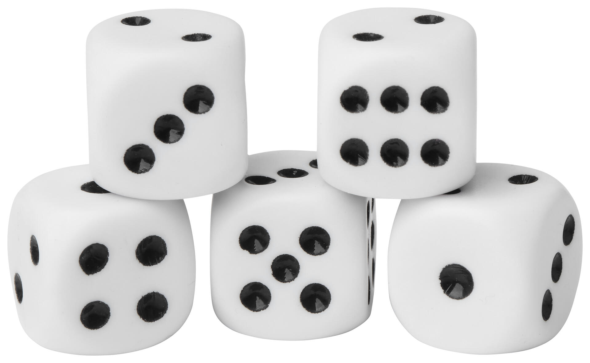 162 stk/pk. Inneholder 30 prikketerninger, 10 tallterninger, 12 blanke terninger, 20 terninger med matematiske symboler og 90 ulike polyhedralterninger. Av ABS-plast. Leveres i en oppbevaringseske av polypropenplast. Fra 6 år.