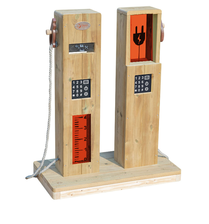 Som en del av rolleleken stopper barna for å lekefylle tanken eller ladde kjøretøyet. Ved å imitere ulike funksjoner i hverdagen utvikler barna forståelsen for omverdenen. Åerfekt å plassere i uteområdet. Høyde 77 cm. Laget av impregnert furu. PVC-fri. Mål: 70x38x88 cm. Fra 3 år. Beregnet for utendørs bruk.