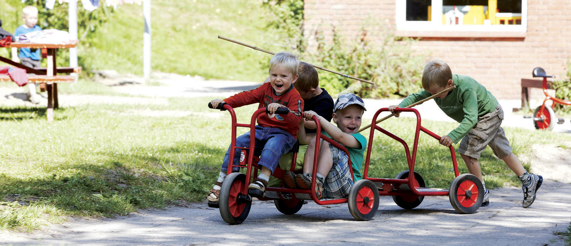 En morsom sykkel med plass til ekstra passasjerer utvikler barns sosiale interaksjon og samarbeidsevne. Fotplate av slitesterk ABS-plast som er enkel å rengjøre. Kulelager både foran og bak. Leveres ferdig montert. Vekt: 17,7 kg. Fra 4 år.