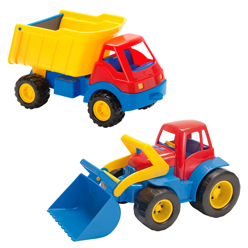 2 stk/pk. Arbeidskjøretøy som hjelper til med det kreative arbeidet i sandkassen. Av næringsmiddelgodkjent polypropen og polyetenplast. Lengde 30 cm. Fra 1 år.