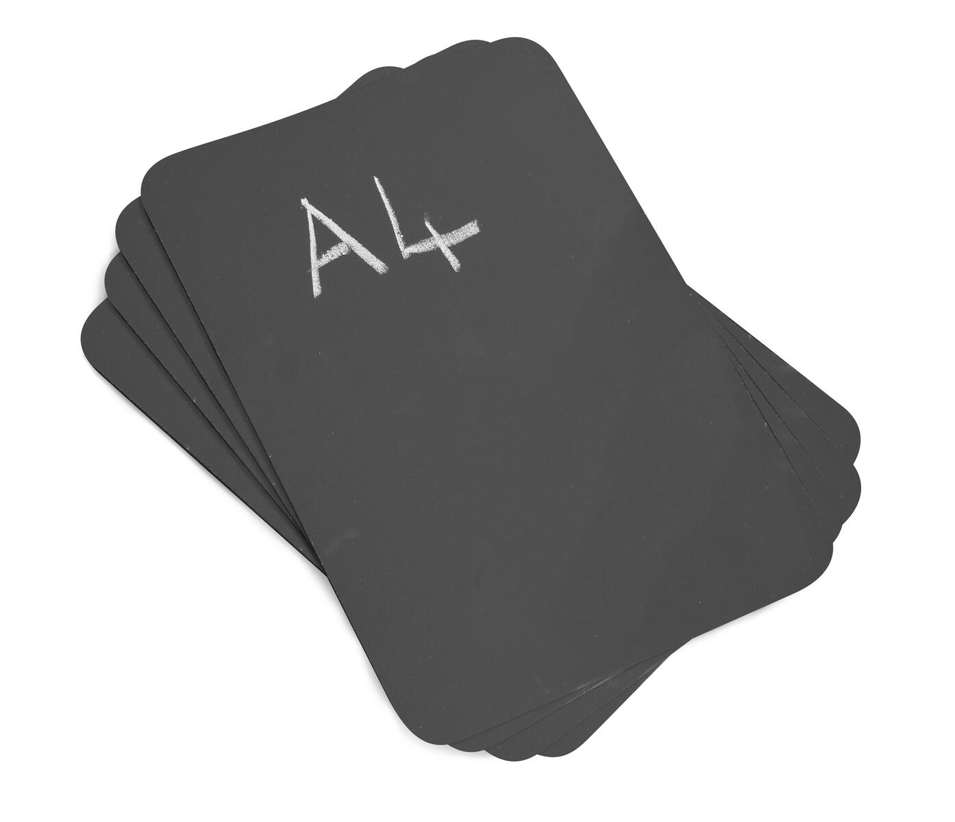 4 stk/pk. Tavler i A4-størrelse som er enkle å ta med seg eller henge ute. Forborede hull gjør dem enkle å henge opp. Snor til oppheng følger ikke med. Kritt selges separat. Mål: H30xB21 cm. Fra 3 år.