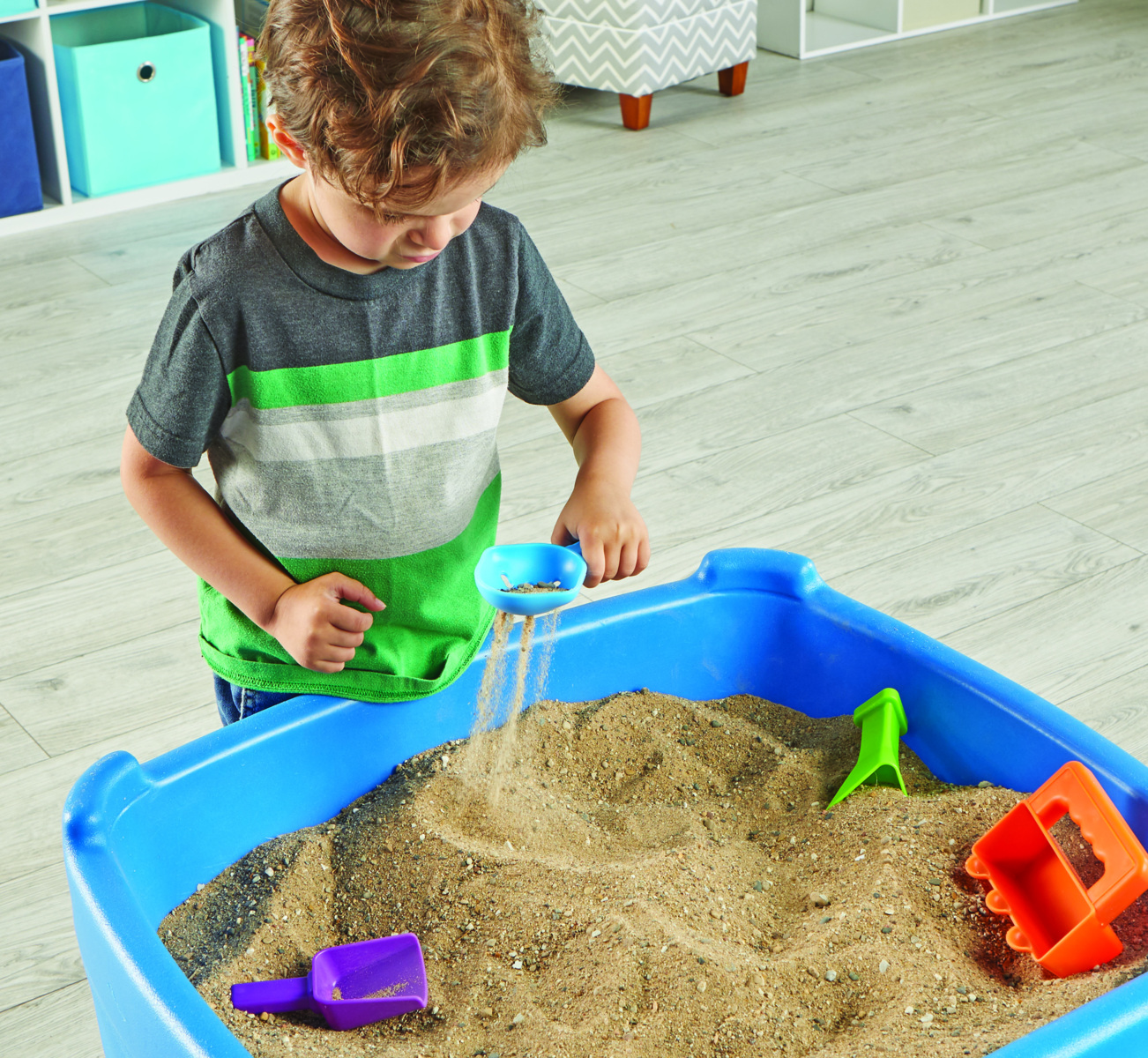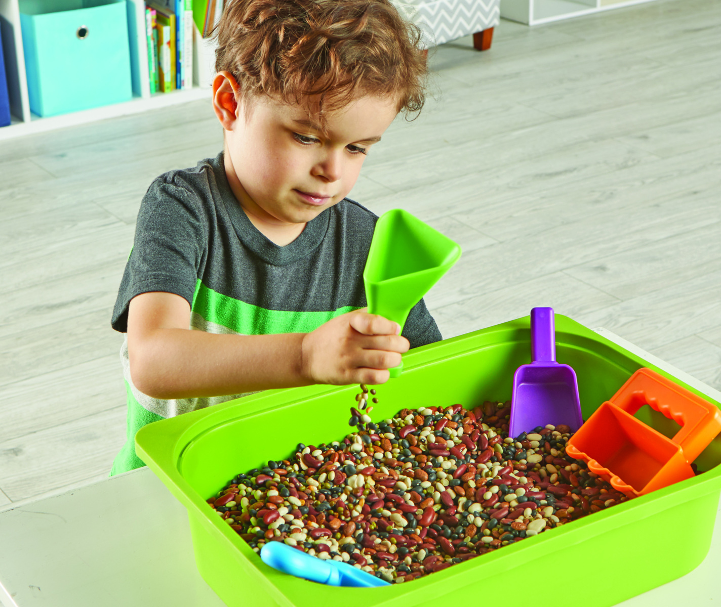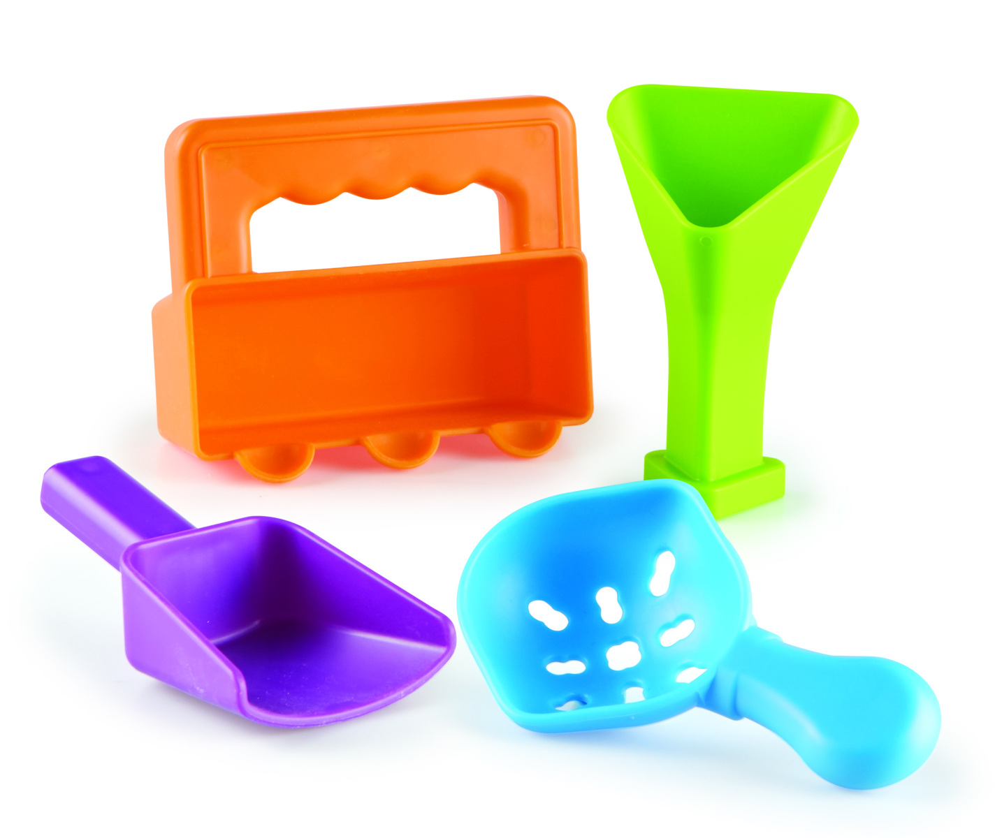 Disse finmotoriske verktøyene er designet for små hender og bidrar til å forbedre hånd-øye-koordinasjon og finmotorikk. Med de fire redskapene kan du øve på å sikte, trakte, rotere, stampe, vri, helle eller øse. Materiale: HIPS. PVC-fri. Fra 3 år.
