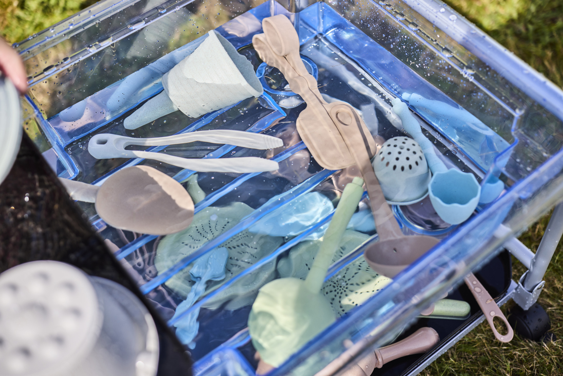 42 deler. Et komplett sett med alt som trengs for utendørs lek! Verktøyene kan brukes i mange ulike miljøer og støtter mange ulike læringsområder. De solide delene kan tømmes, fylles, brukes til å helle, lage sandformer, blande og stable. Vask av med varmt vann. Av PP. PVC-fri. Fra 10 måneder.